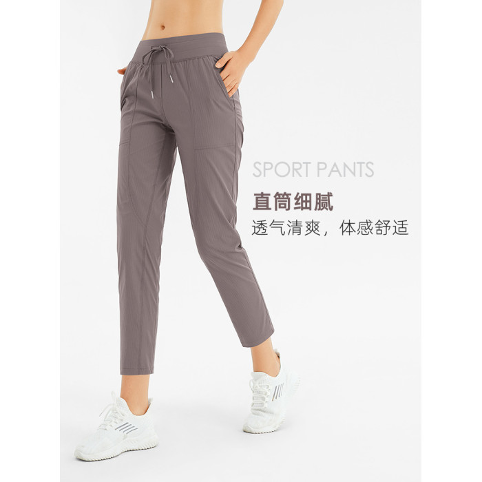 運動褲女輕薄寬松修身直筒彈力速乾透氣休閒跑步瑜伽健身九分褲夏