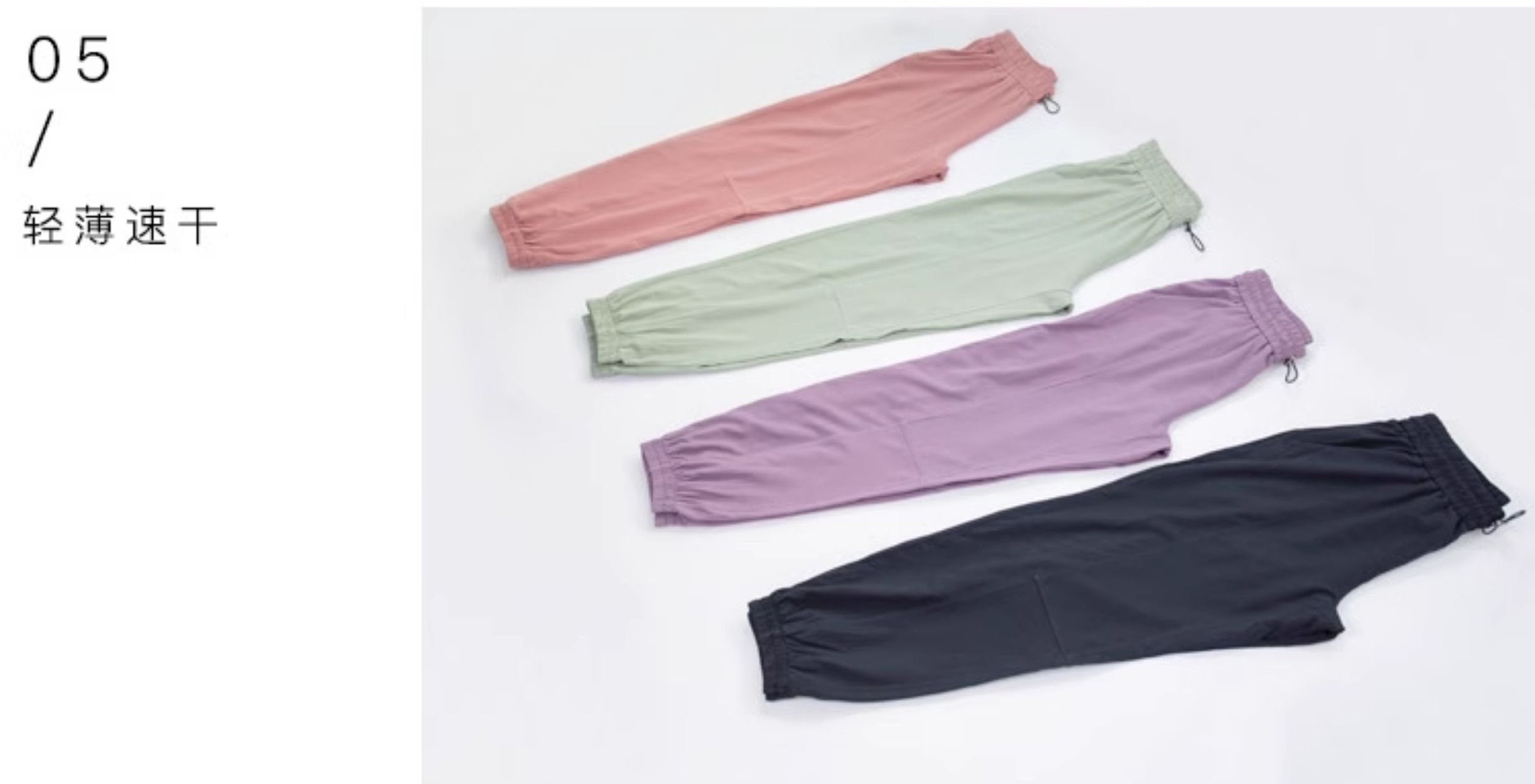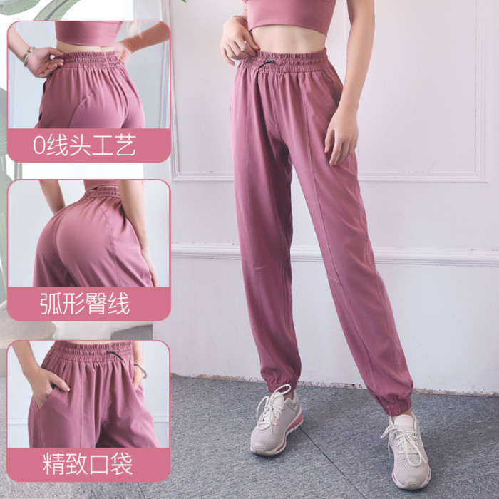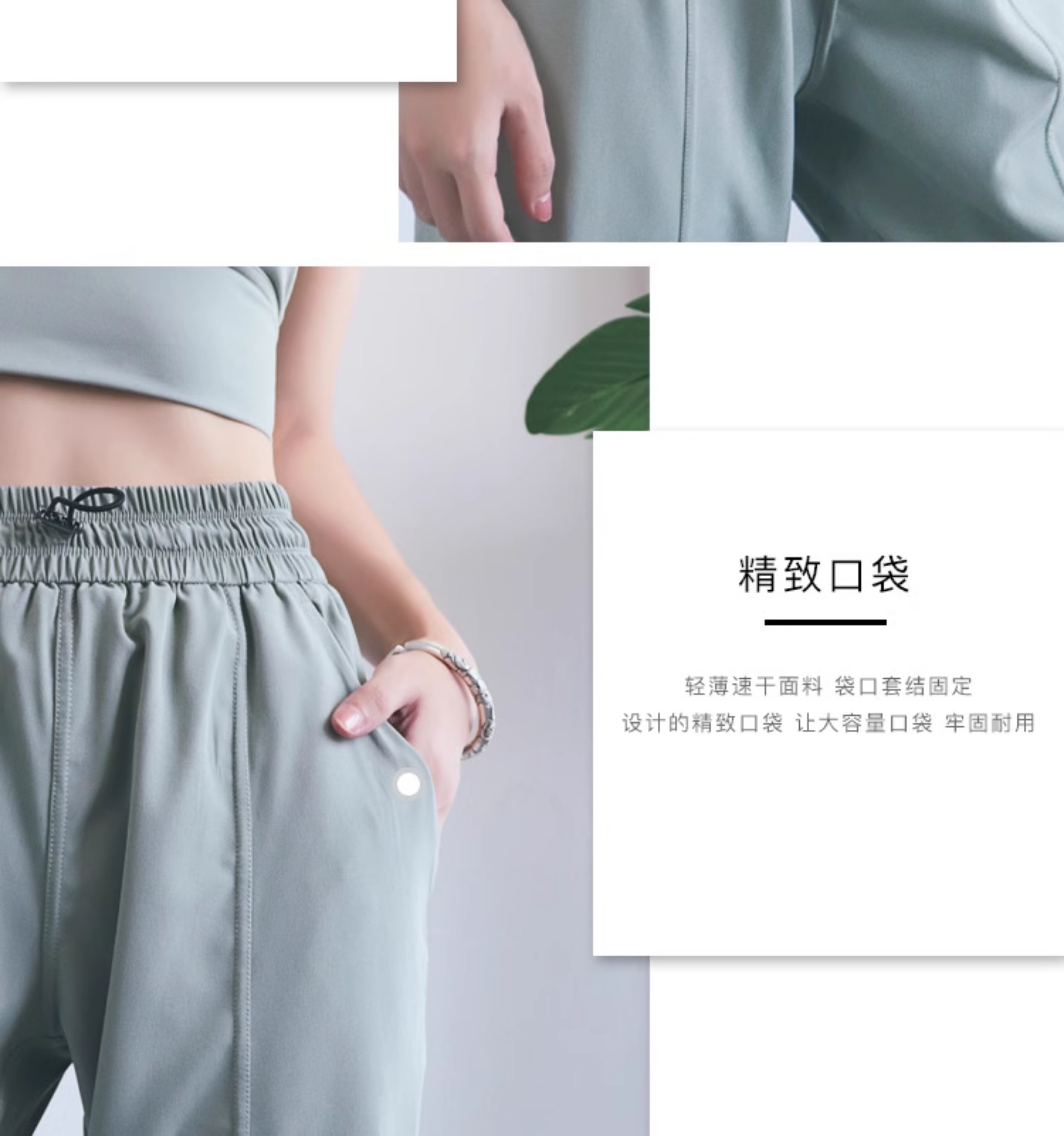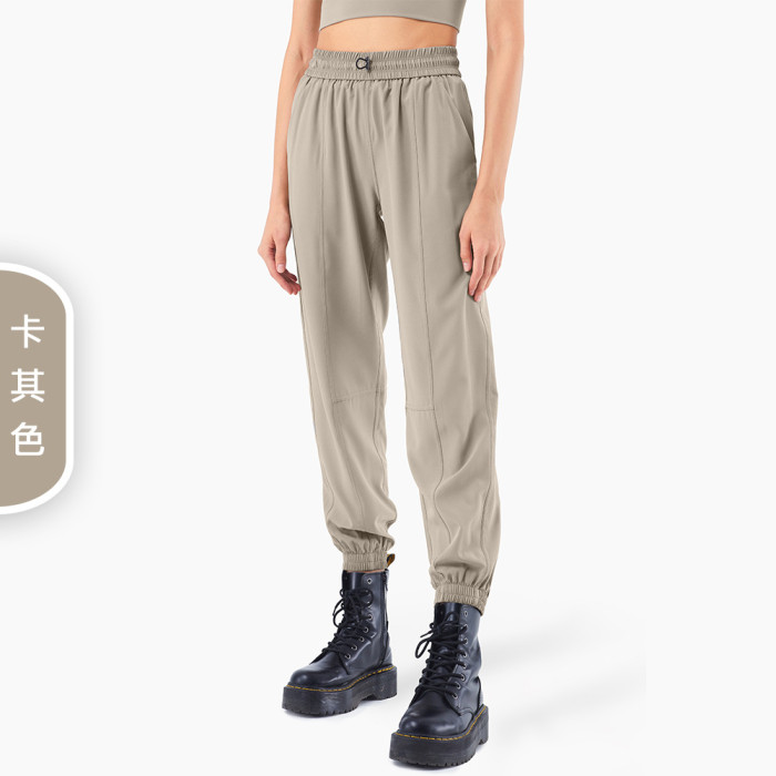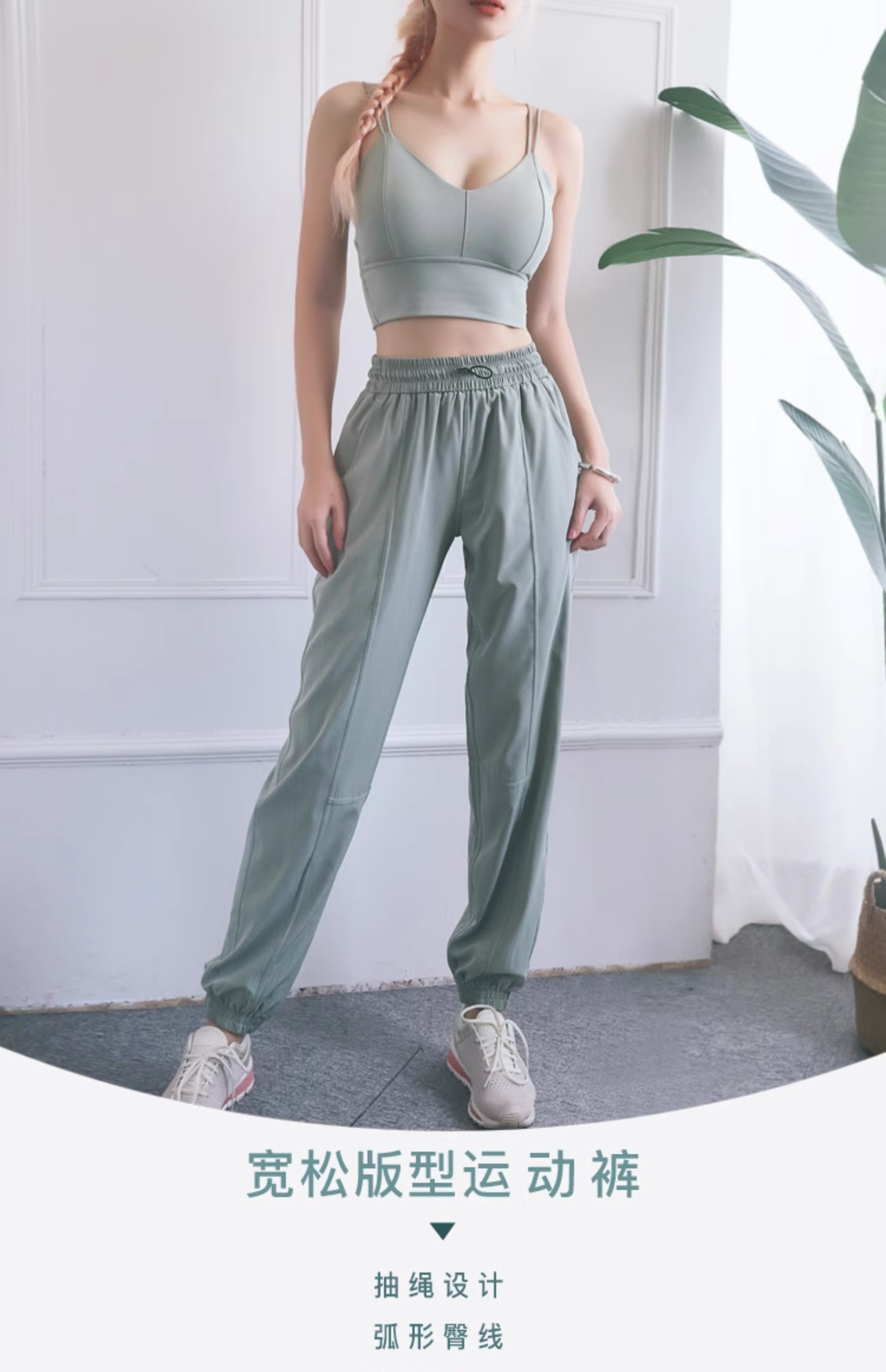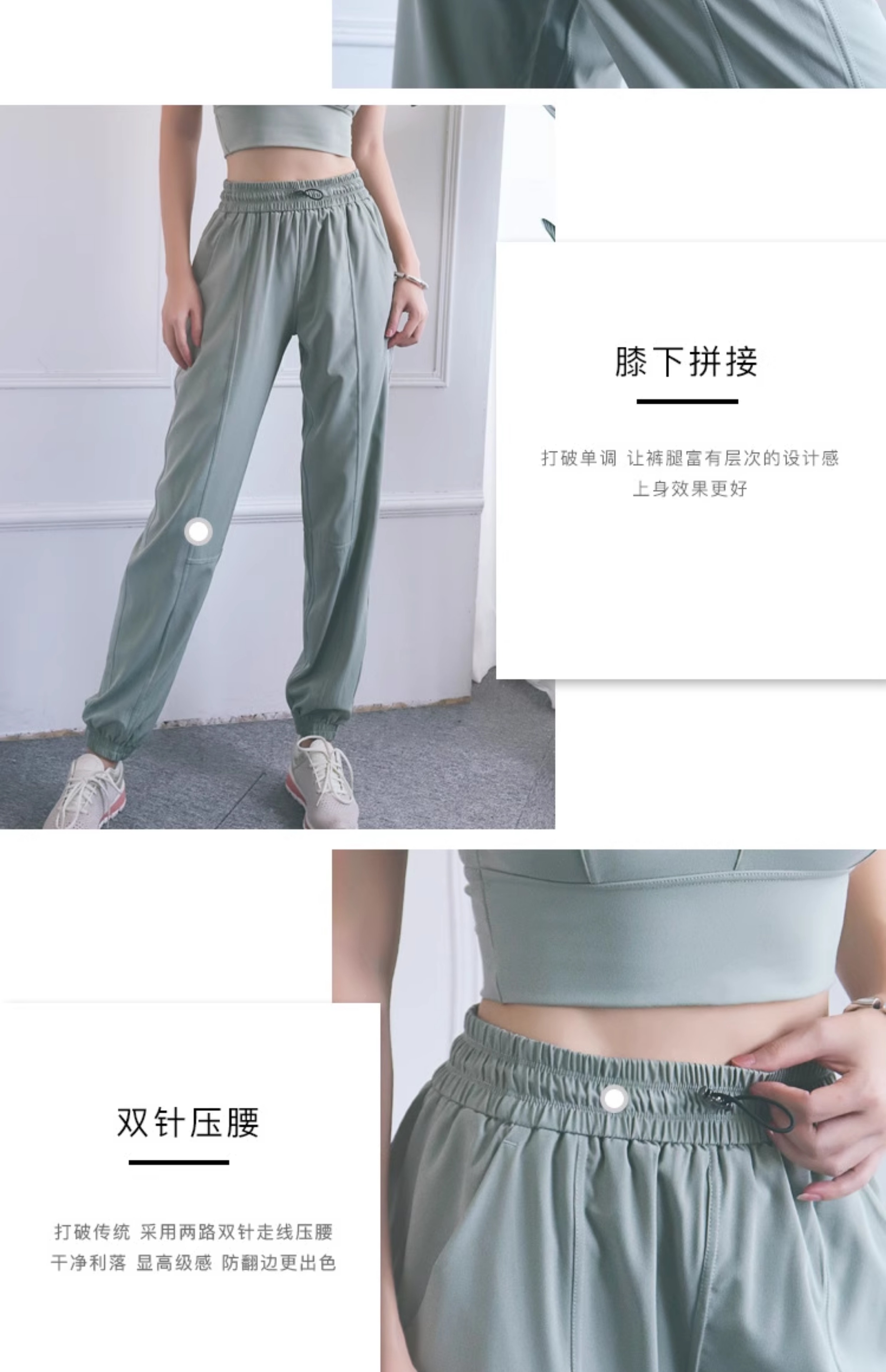 薄款親膚抽繩運動褲女款式高腰健身束腳收口跑步學生瑜伽長褲九分