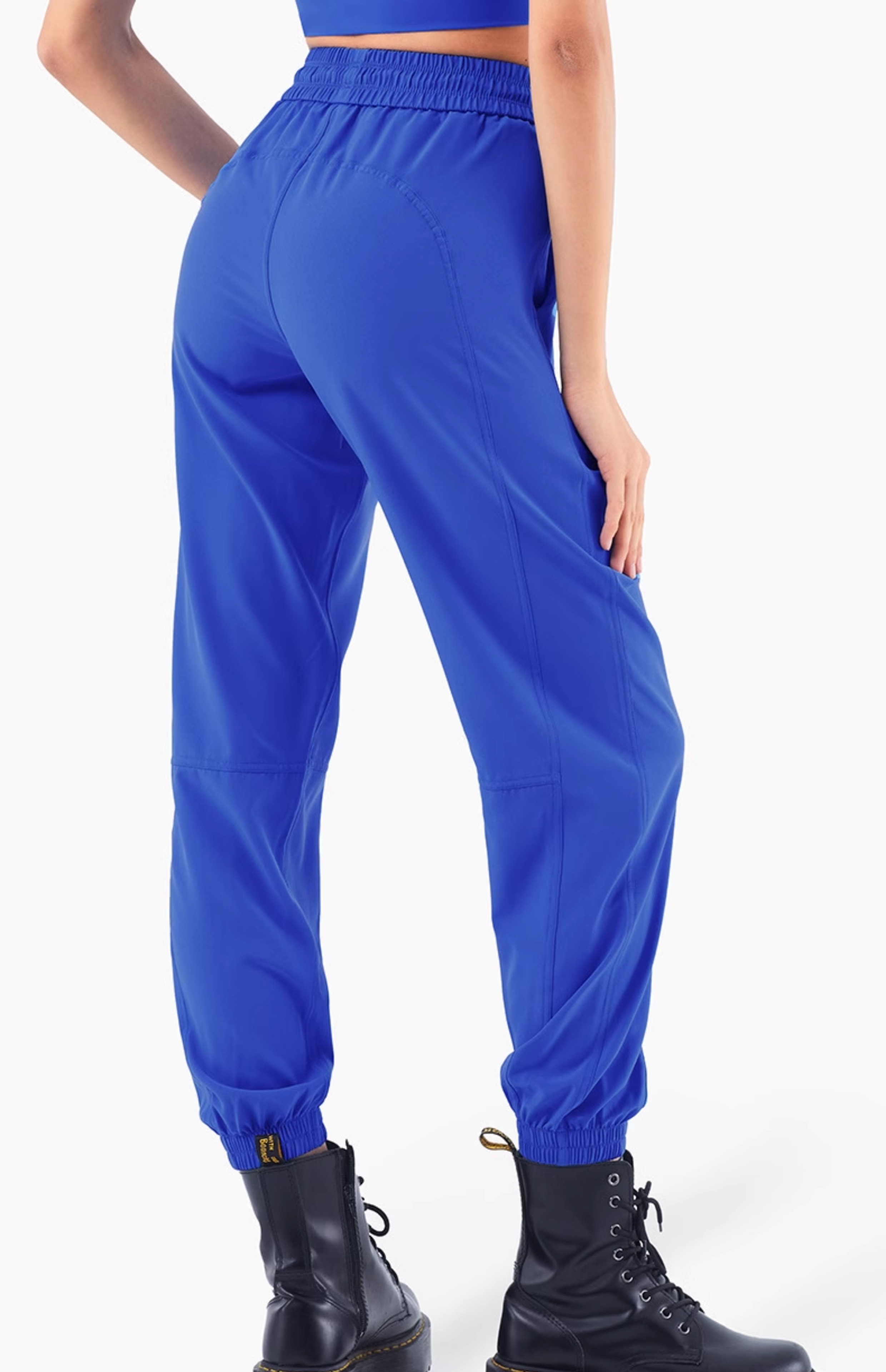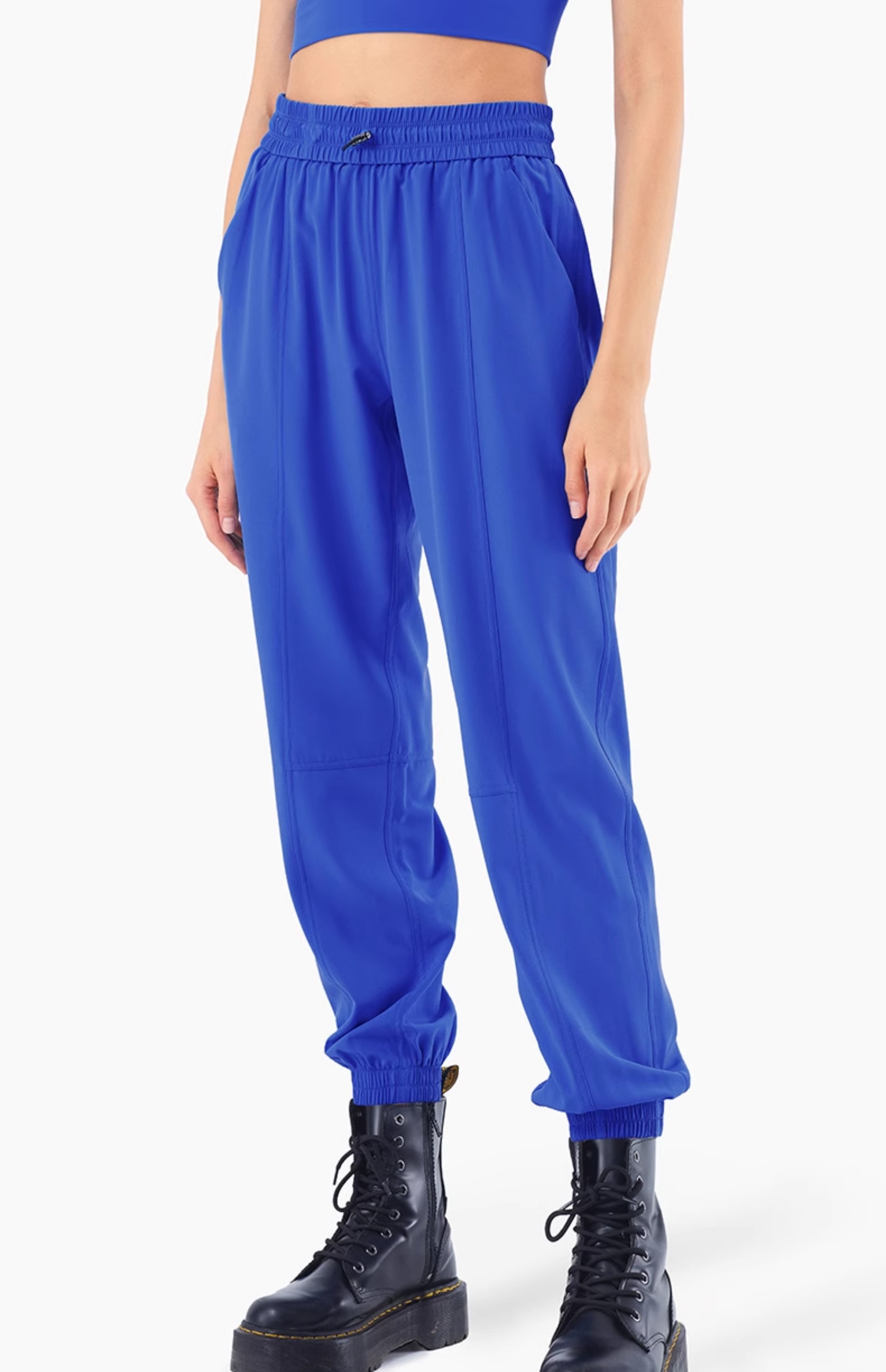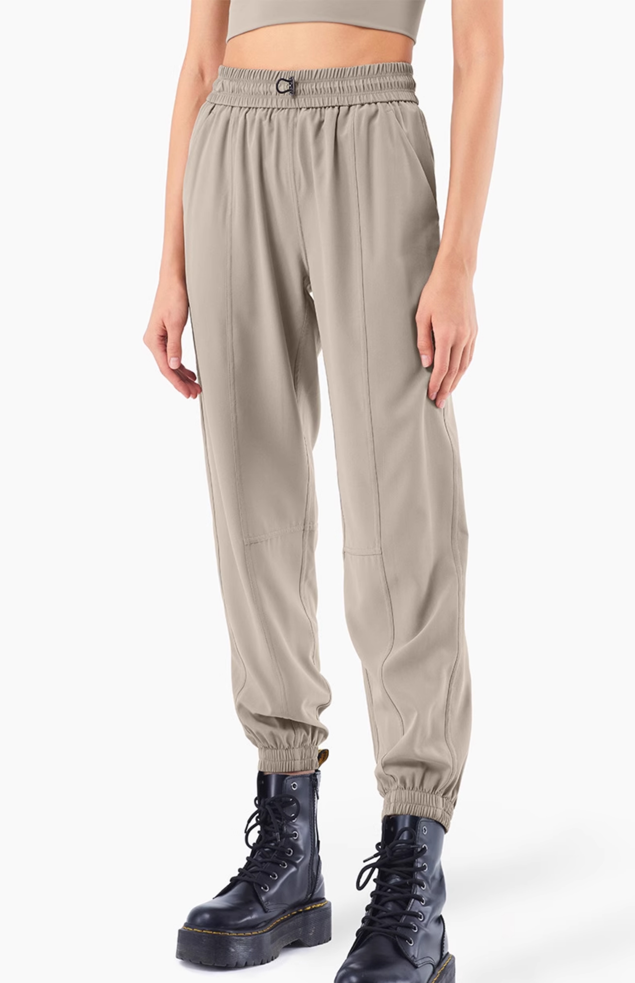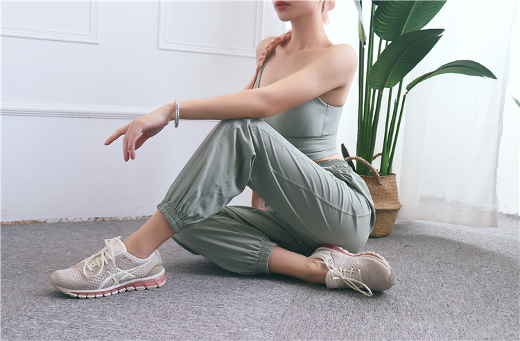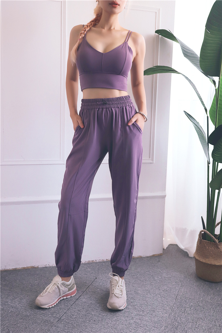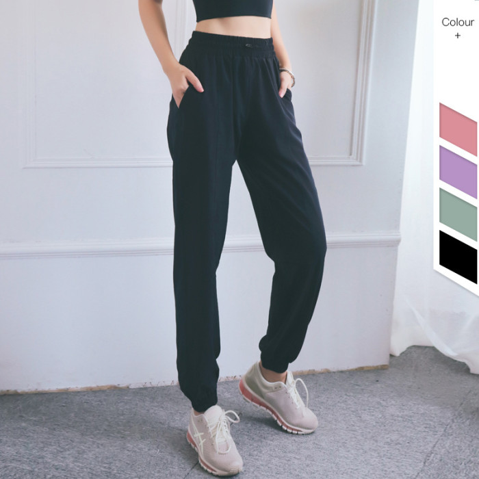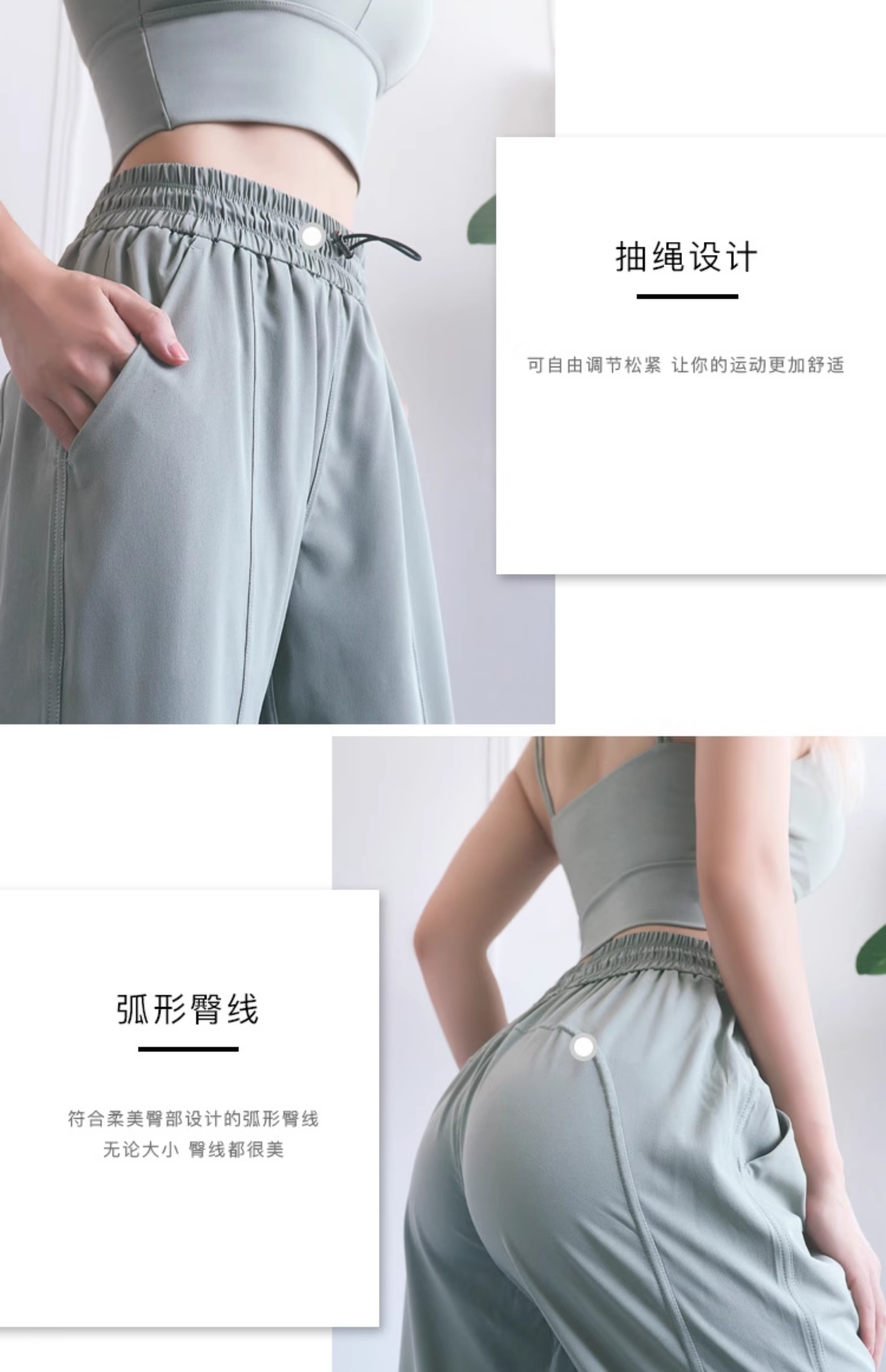 薄款親膚抽繩運動褲女款式高腰健身束腳收口跑步學生瑜伽長褲九分