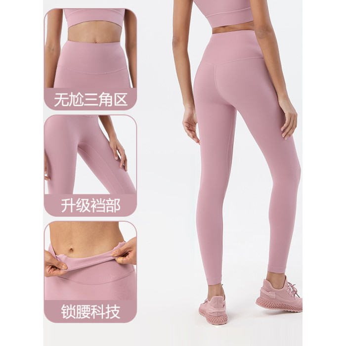 新款裸感瑜伽褲女外穿健身褲女高腰提臀無痕九分運動褲女緊身褲