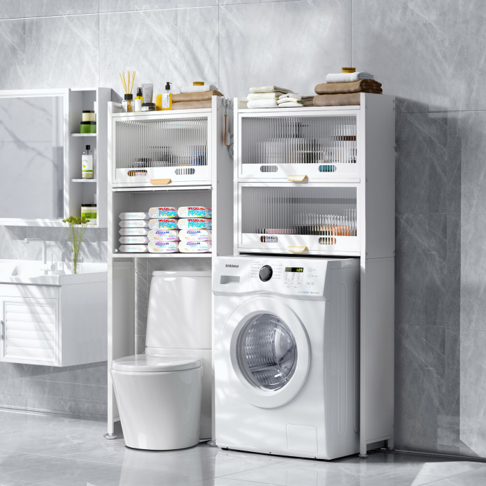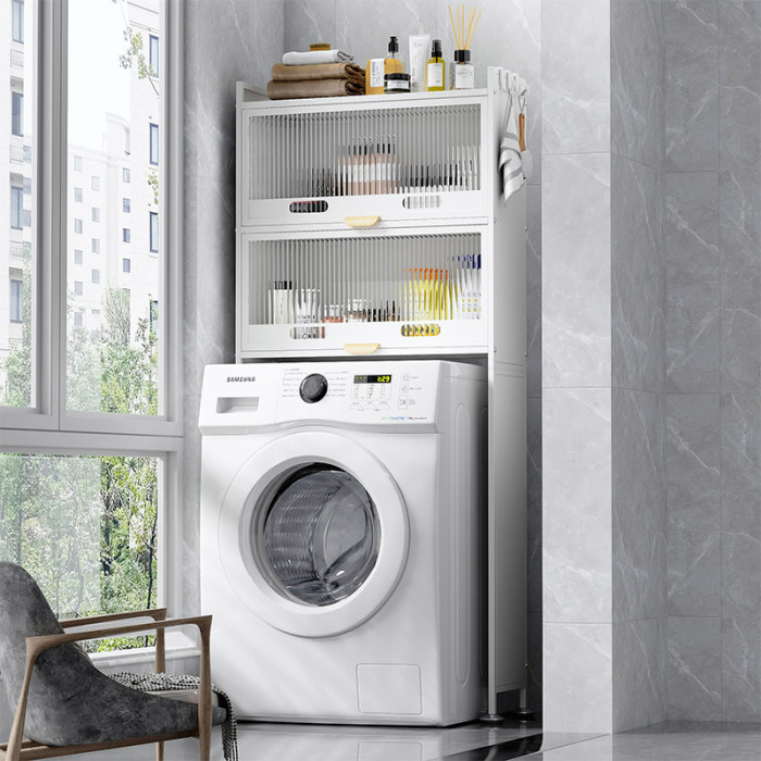洗衣機置物架帶櫃門陽台衛生間浴室馬桶上方一體多功能儲物收納櫃