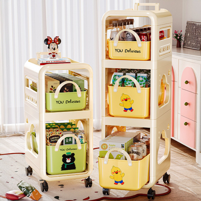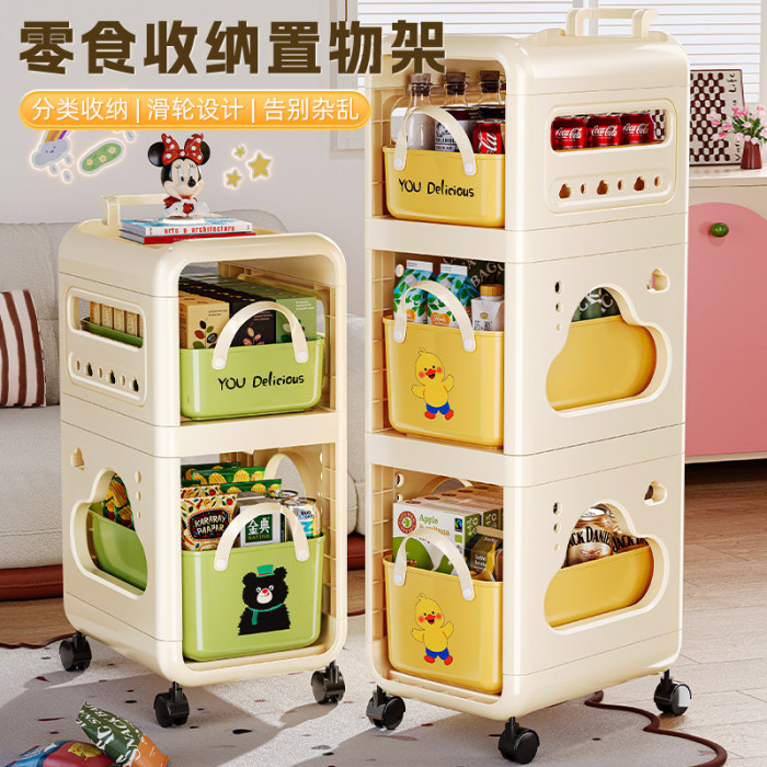 廚房多層收納架子零食置物架可移動落地推車家用客廳多巴胺小推車