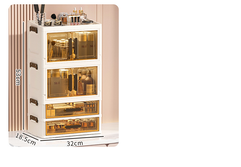 化妝品收納盒桌面梳妝台護膚品置物架大容量折曡抽屜式多層防灰塵