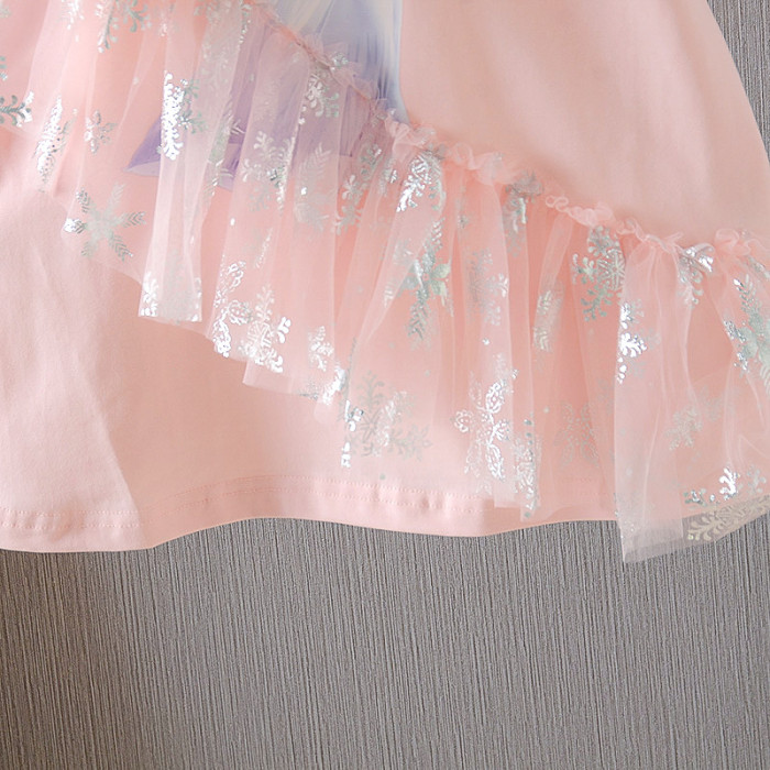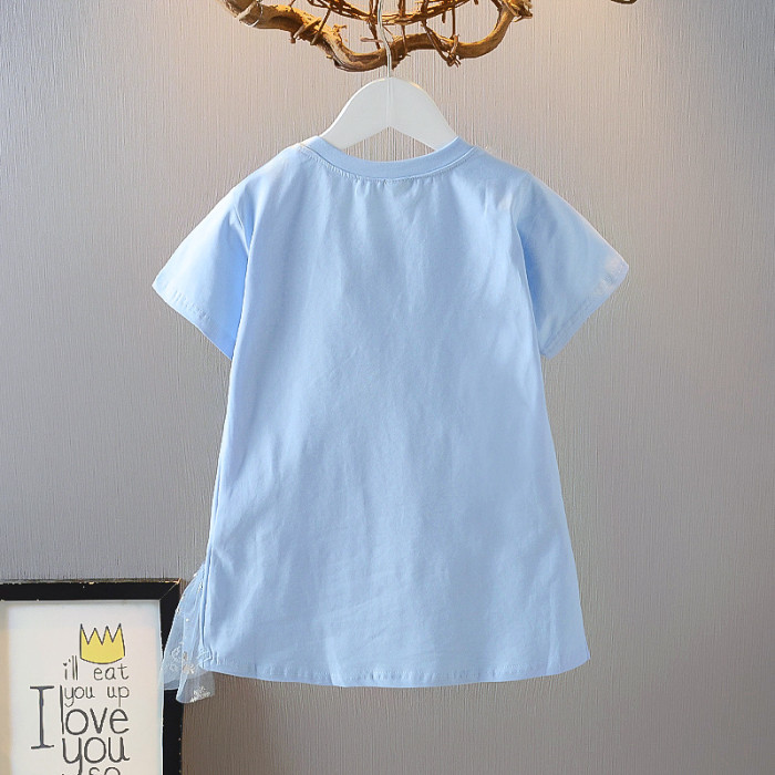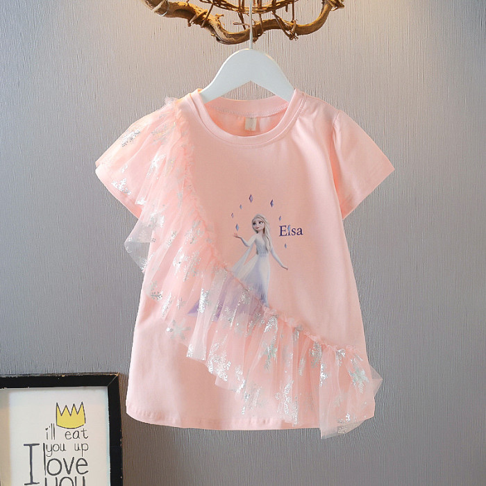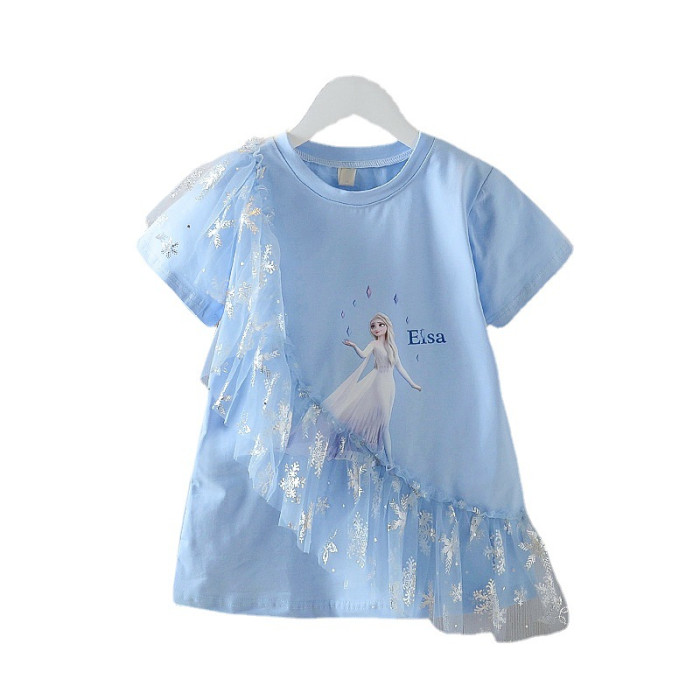 女童愛莎公主裙2025女寶寶夏季T恤裙兒童連衣裙韓版洋氣潮裝