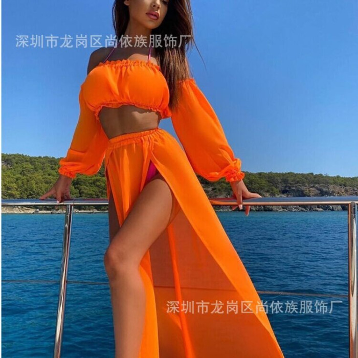 歐美長袖純色沙灘度假防曬服兩件套罩衫17色