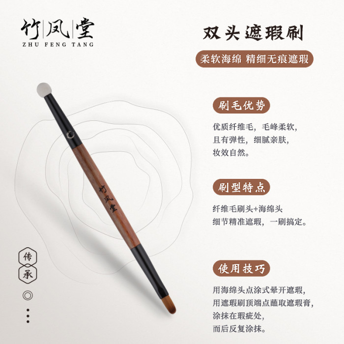 竹鳳堂化妝刷雛鳳F939雙頭遮瑕刷海綿頭精細遮暇黑眼圈淚溝法令紋