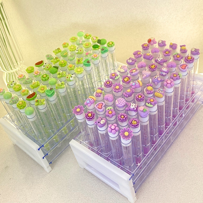 一次性睫毛刷帶管卡通款獨立管裝睫毛梳可攜式化妝刷眉刷試管筒50支