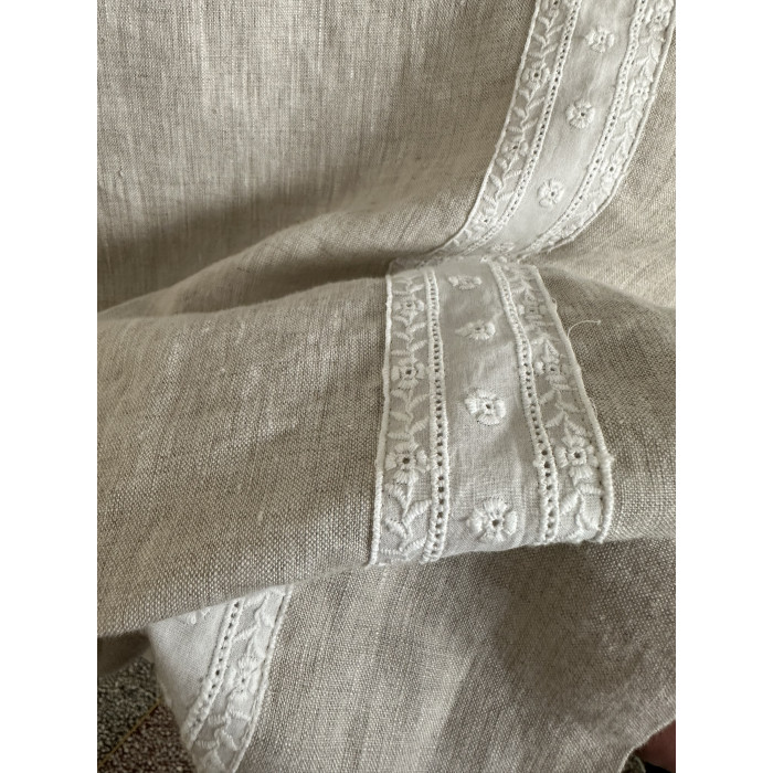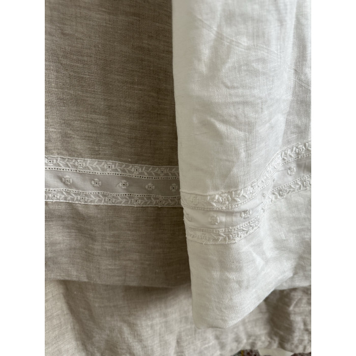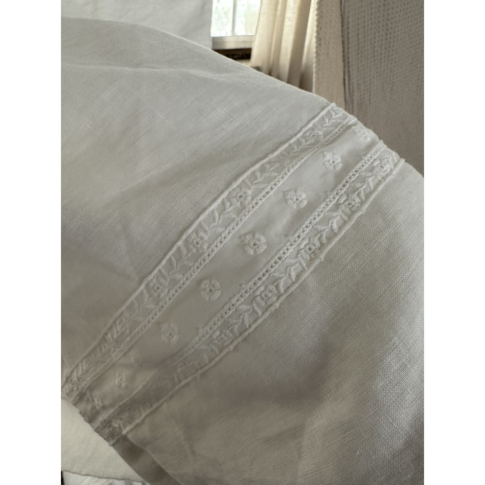 法國純亞麻水洗無染色花邊裝飾雙人床單