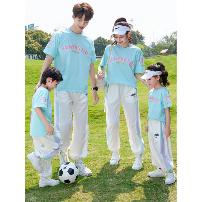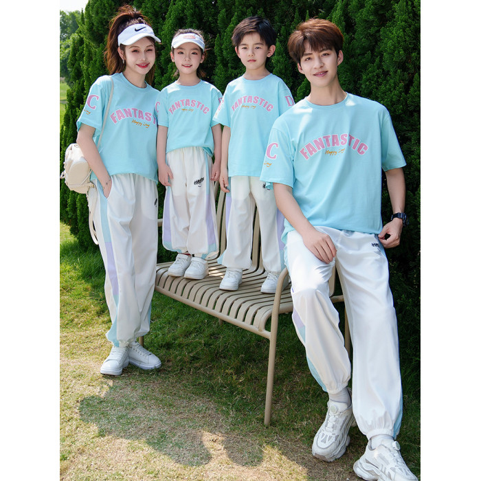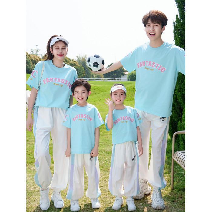 親子裝夏季一家三口四口母子裝短袖t恤幼兒園活動運動會母女套裝