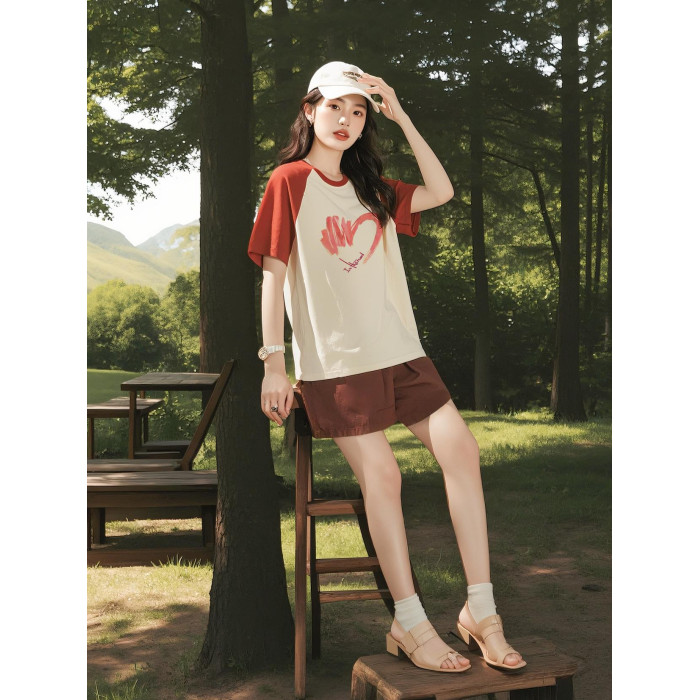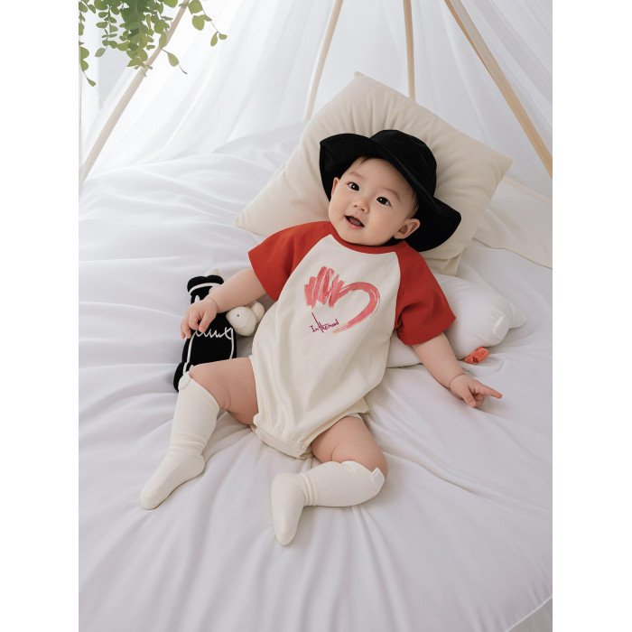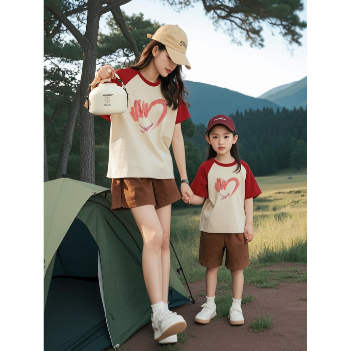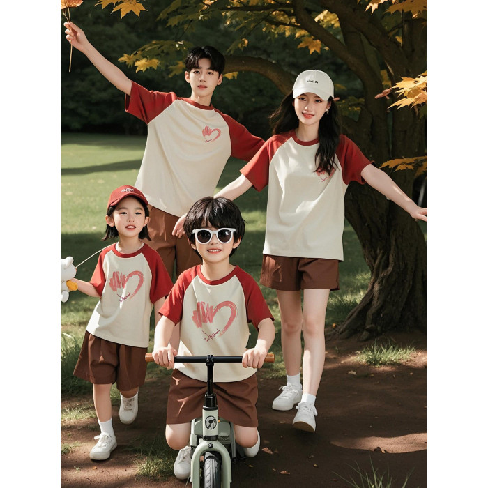 親子裝夏裝2025短袖愛心T恤一家三四口洋氣母子母女嬰兒撞色上衣