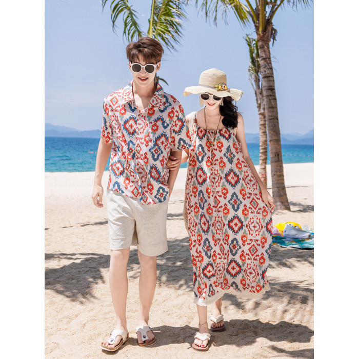 親子裝夏季一家三四口夏威夷復古港風襯衫海邊度假吊帶休閒連衣裙