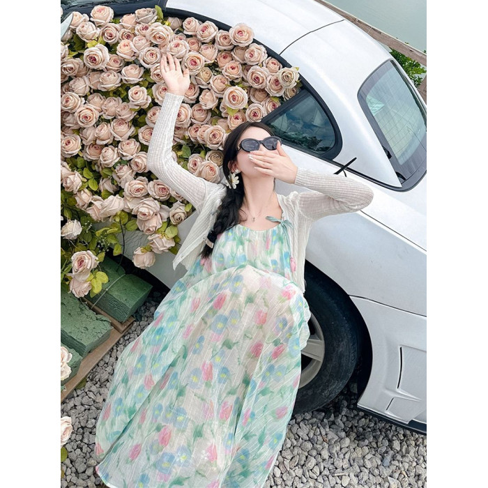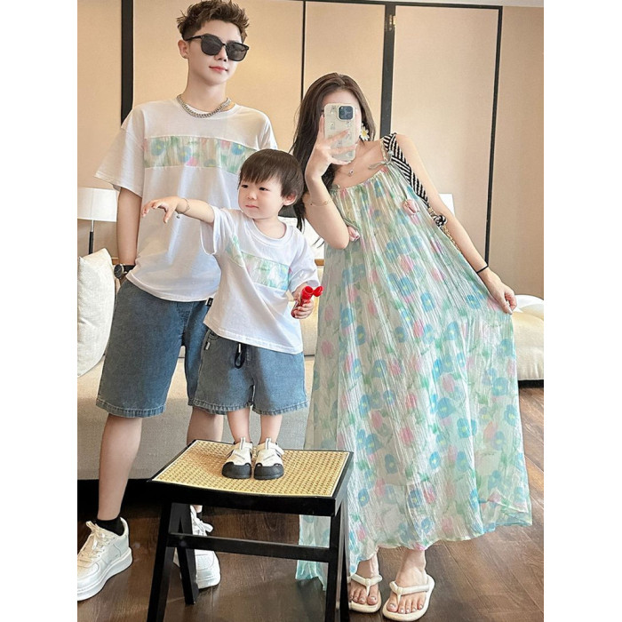 海邊度假連衣裙親子裝母女款一家三口四海島出遊多巴胺三亞沙灘裙
