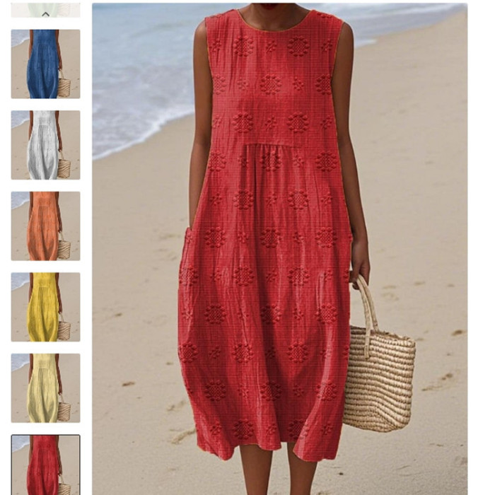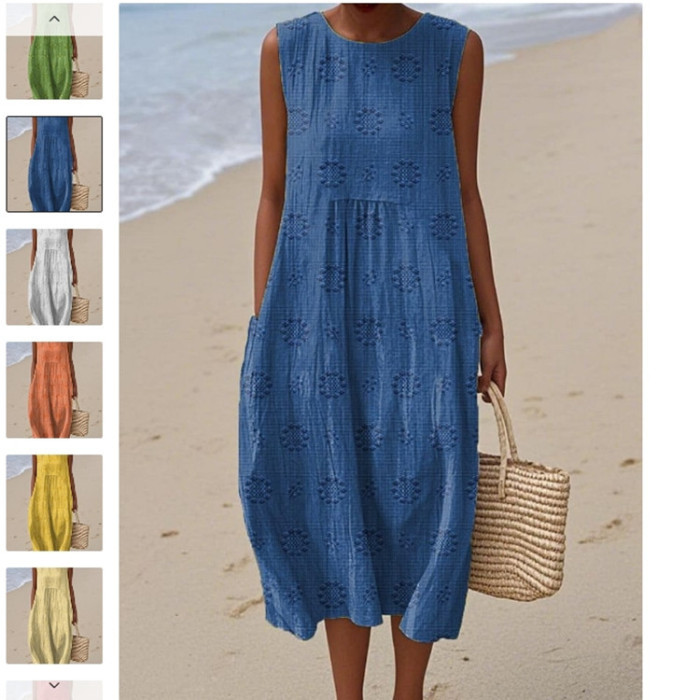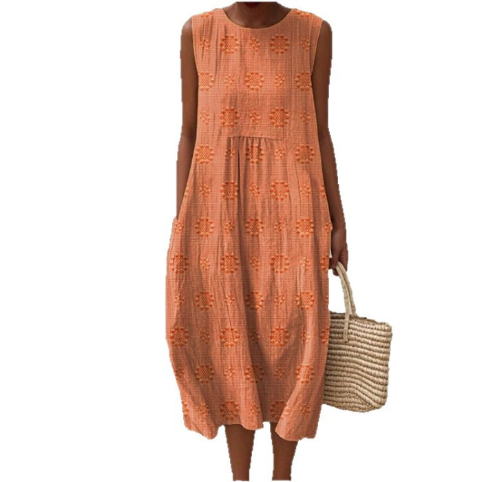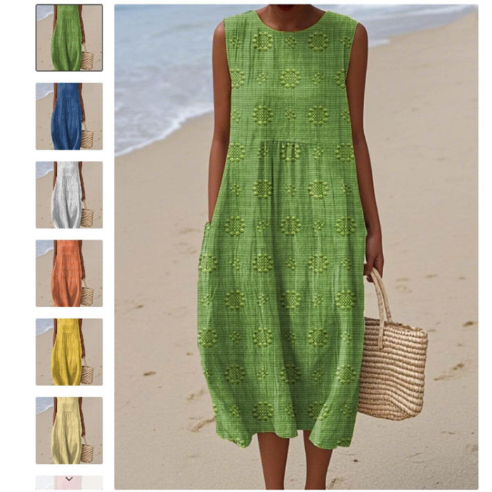 2025歐美春夏季新款無袖休閒印花氣質長裙連衣裙修身小清新休閒裙