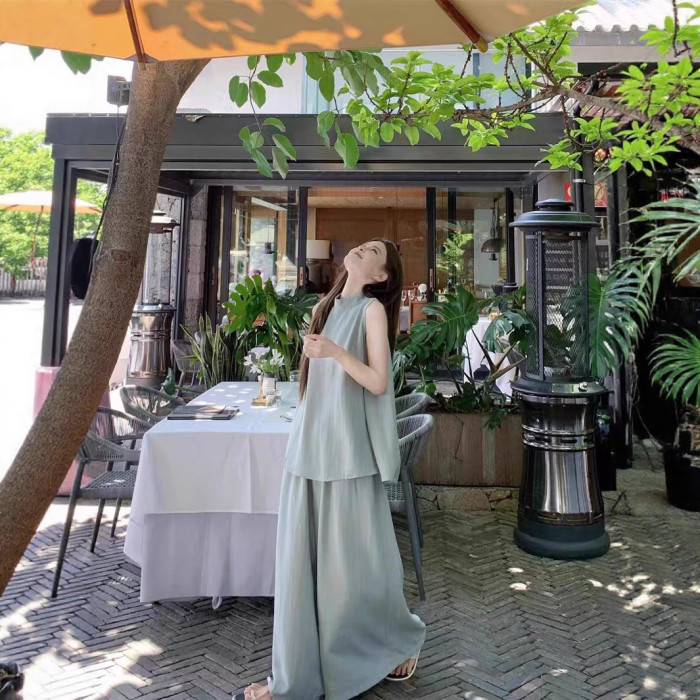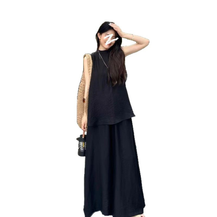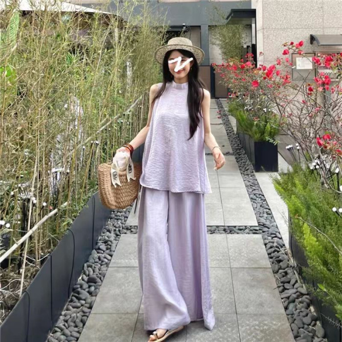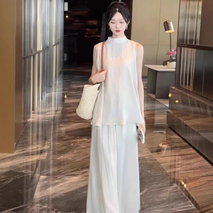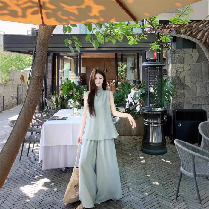 禪意風休閒套裝女2025夏季寬松氣質無袖上衣時尚濶腿褲兩件套洋氣