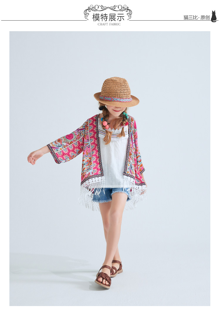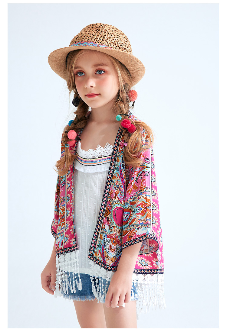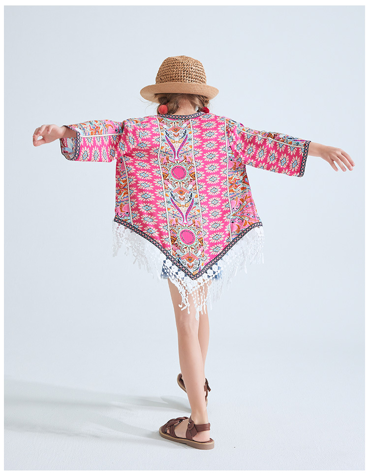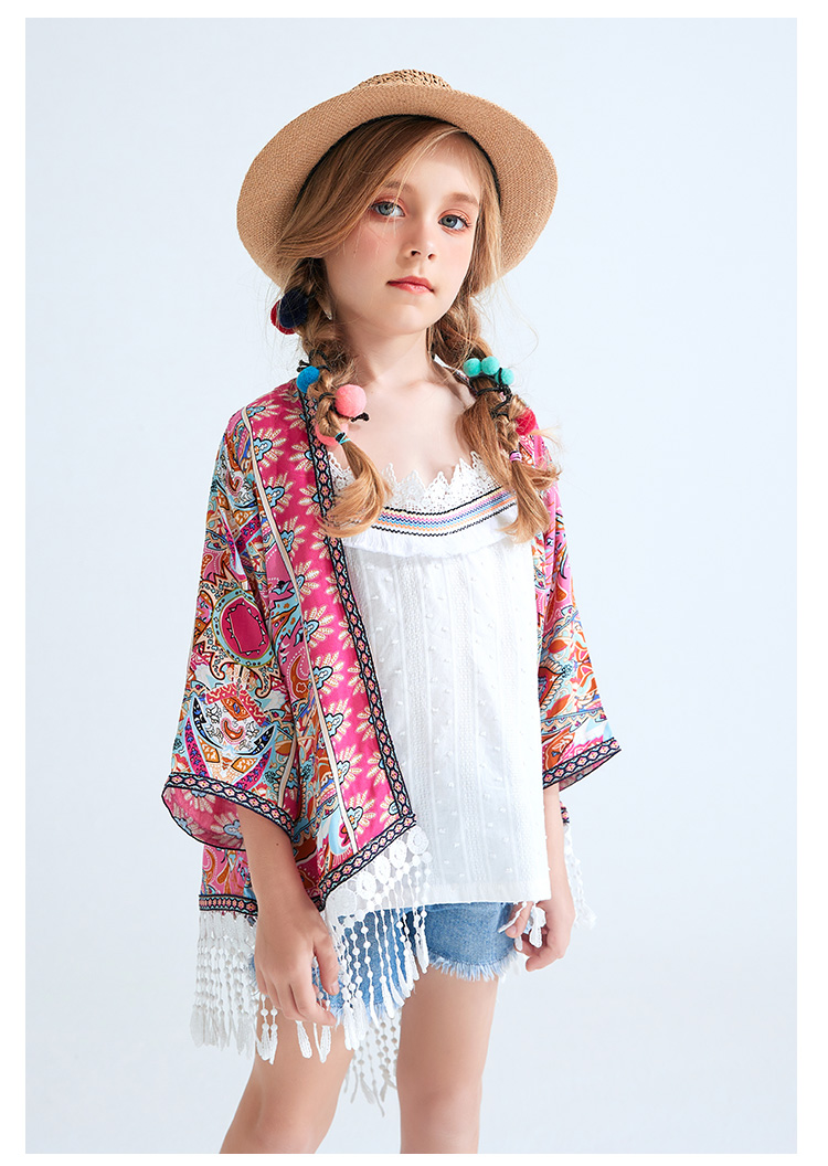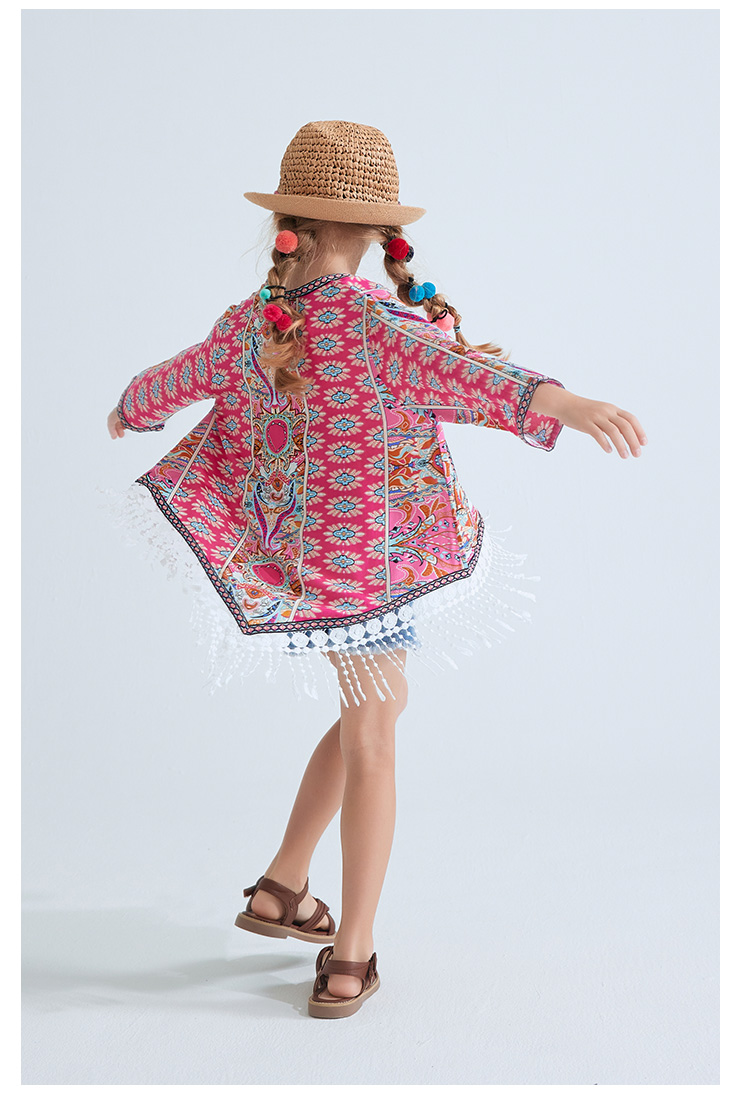民族風兒童開衫旅行度假沙灘外搭薄款披肩2025夏季女童防曬衣外套