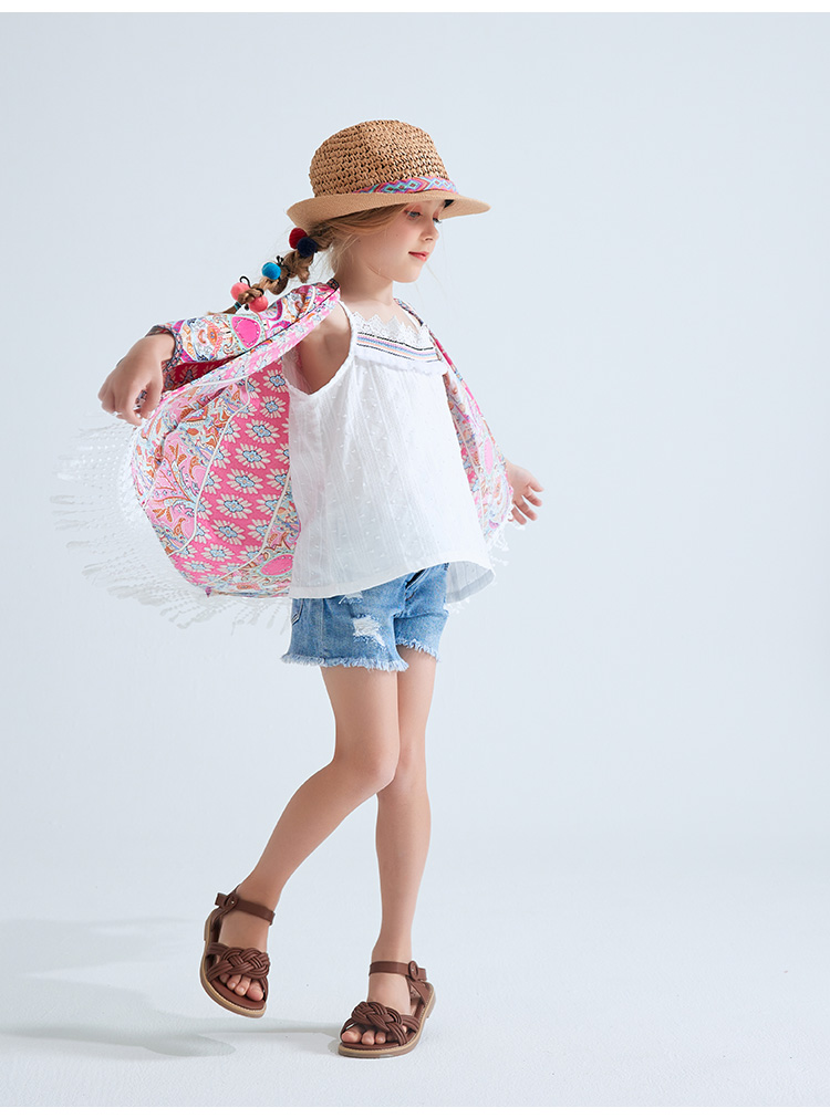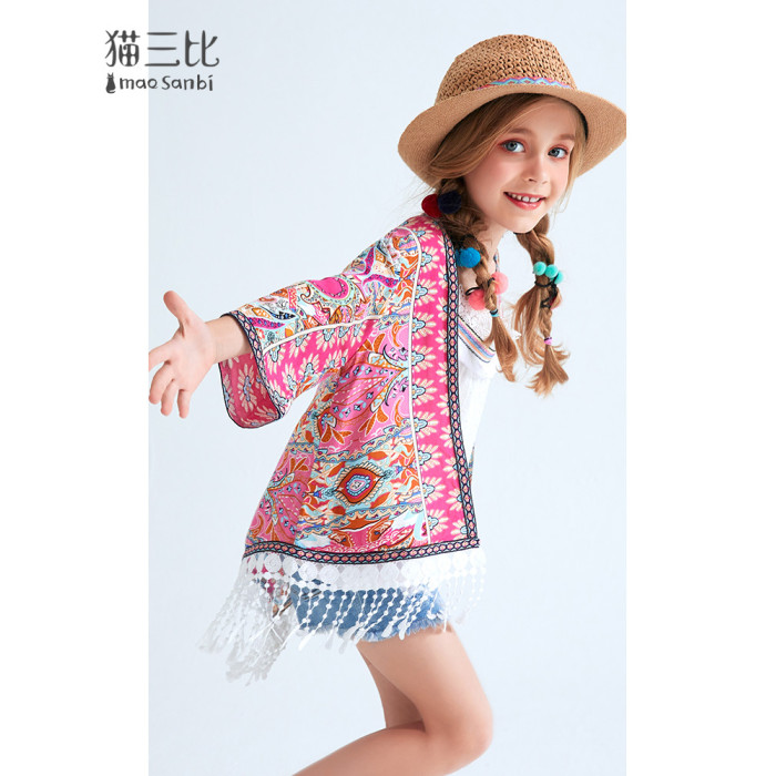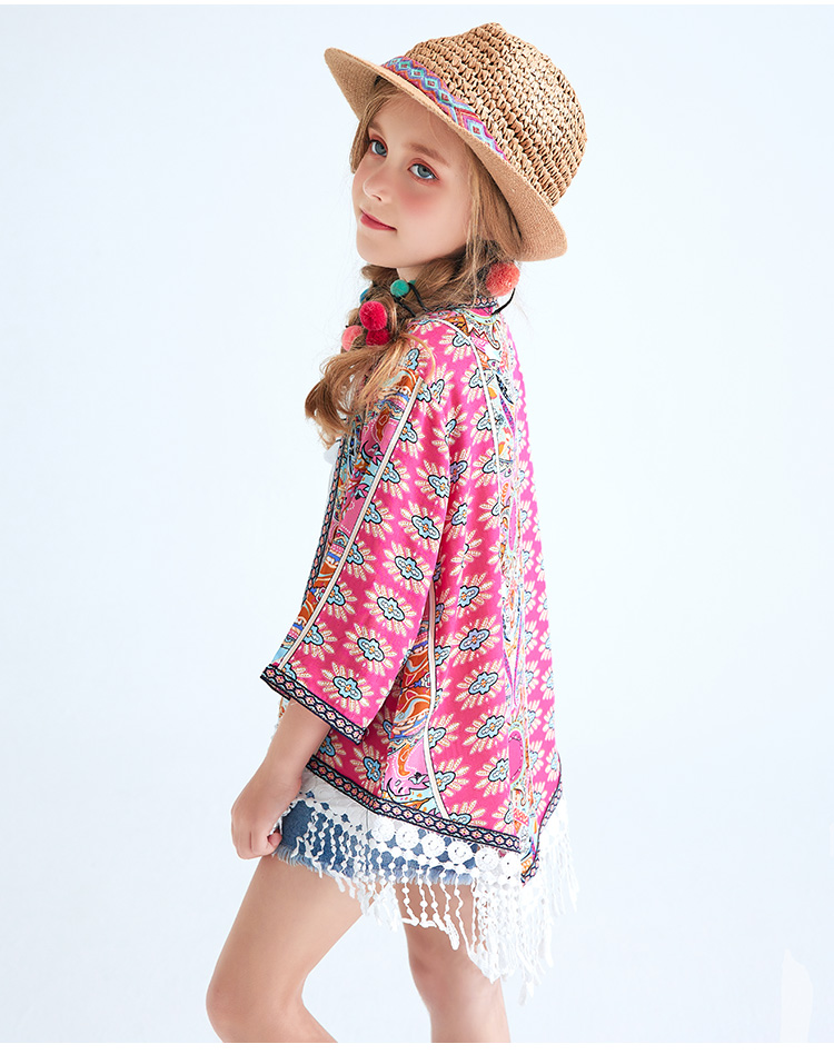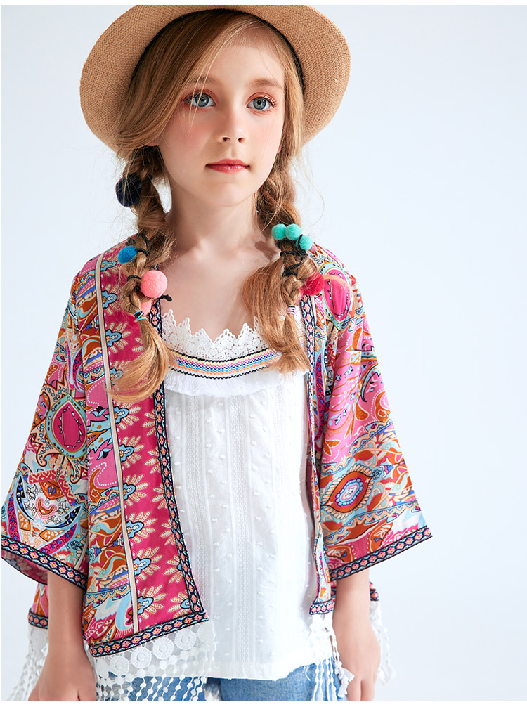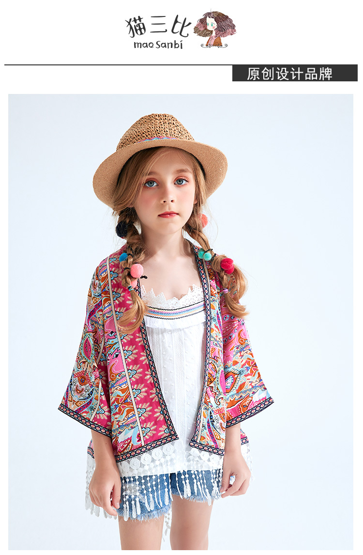 民族風兒童開衫旅行度假沙灘外搭薄款披肩2025夏季女童防曬衣外套