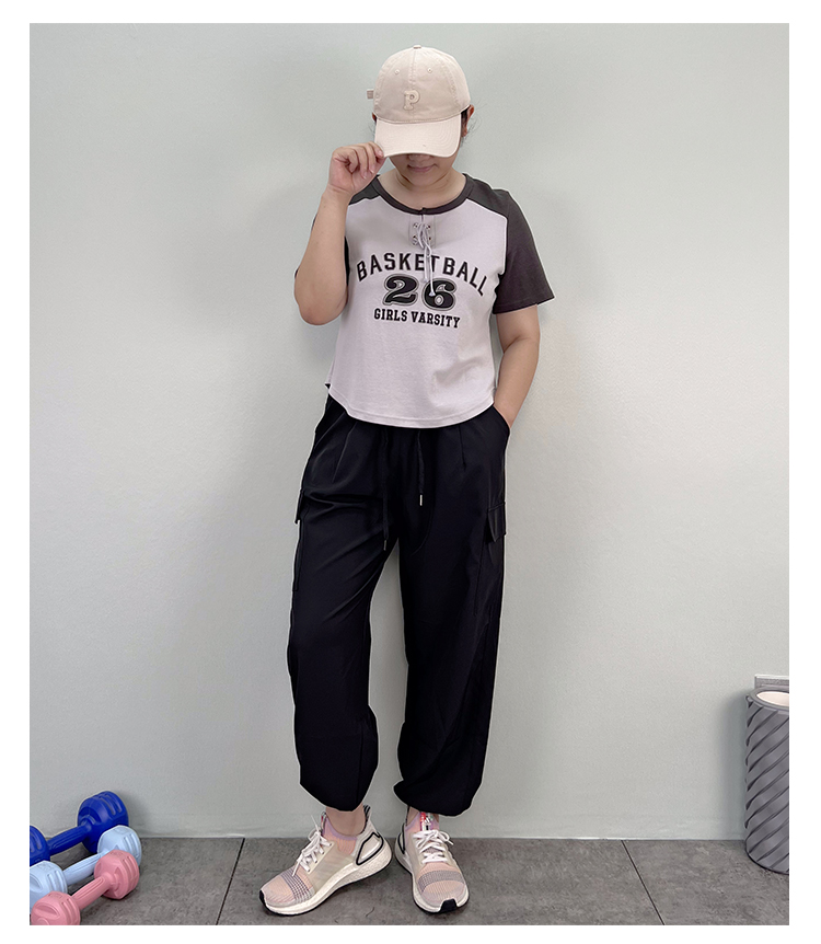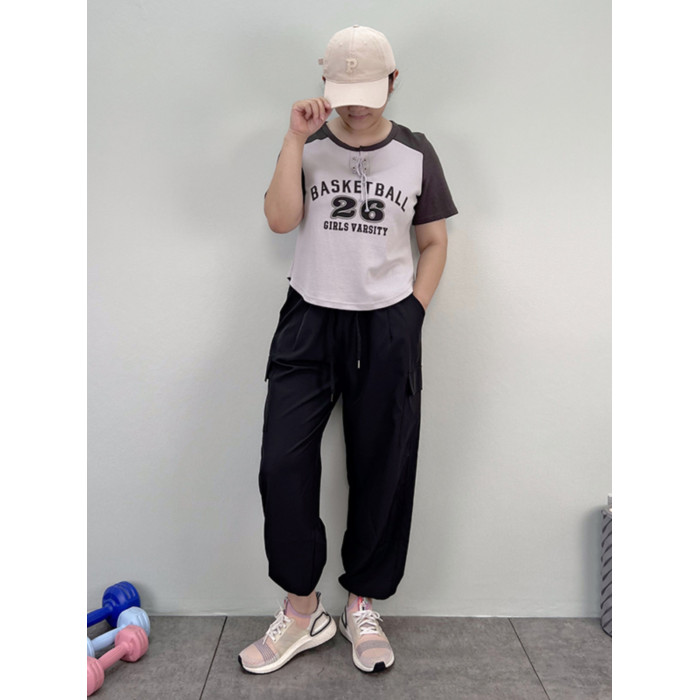 May大碼運動褲女寬松束腳褲胖mm跑步健身褲薄款速乾夏季長褲200斤