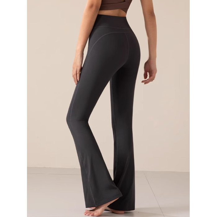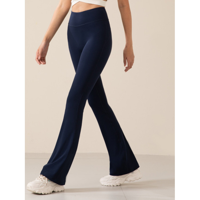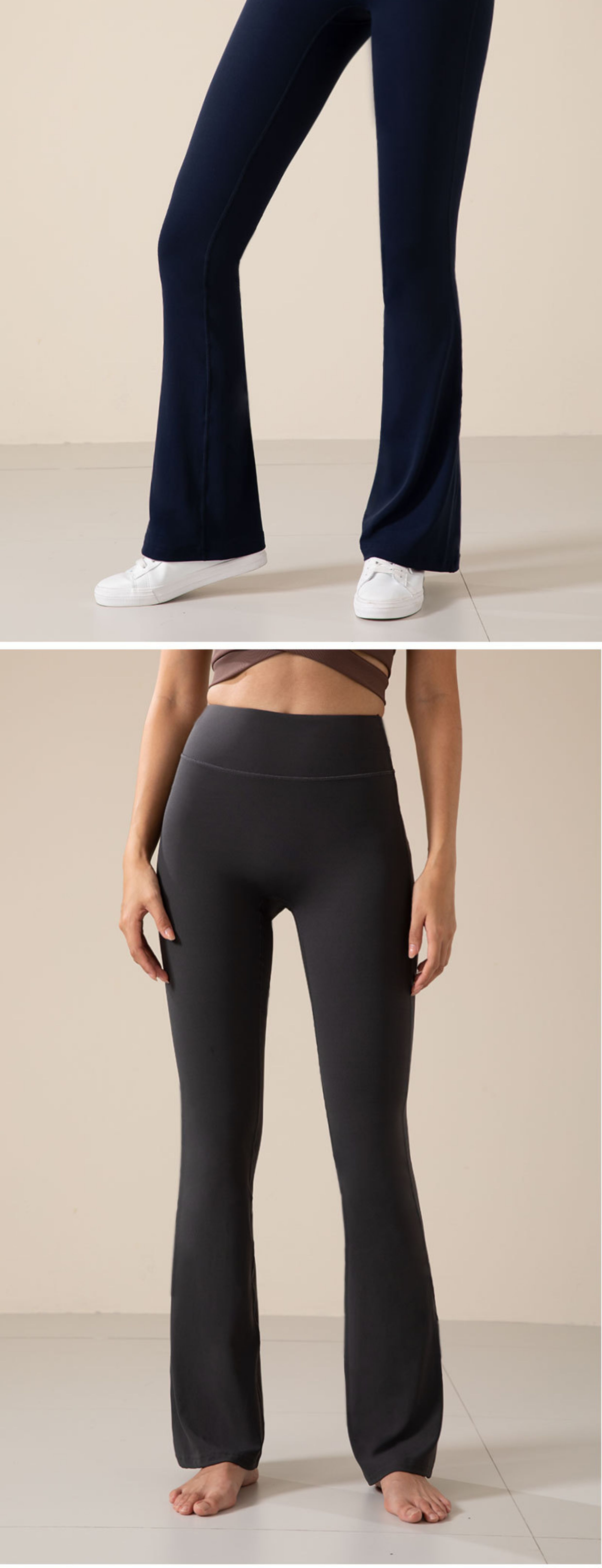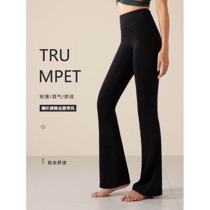 新款裸感瑜伽喇叭褲女無尲尬緊身提臀收腹彈力高腰跑步運動褲