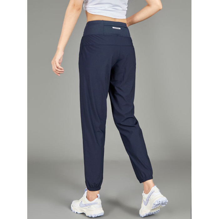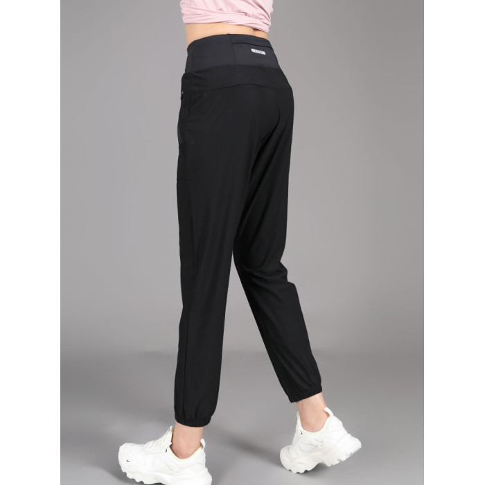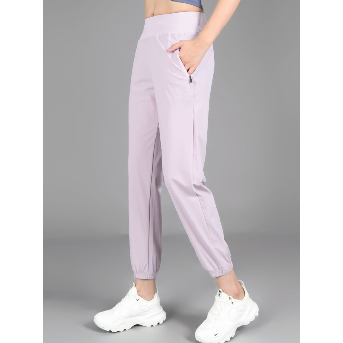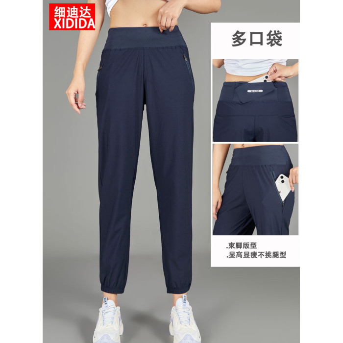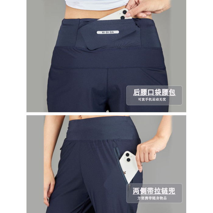 速乾運動褲女薄款寬松休閒訓練長褲拉鍊口袋健身跑步束腳高腰衛褲