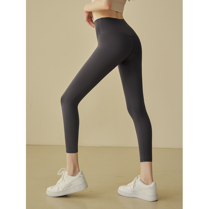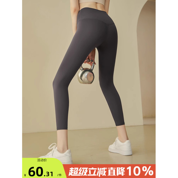 無尲尬線裸感瑜伽褲女高腰提臀跑步運動褲彈力緊身健身褲跑步長褲