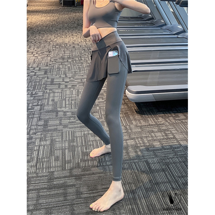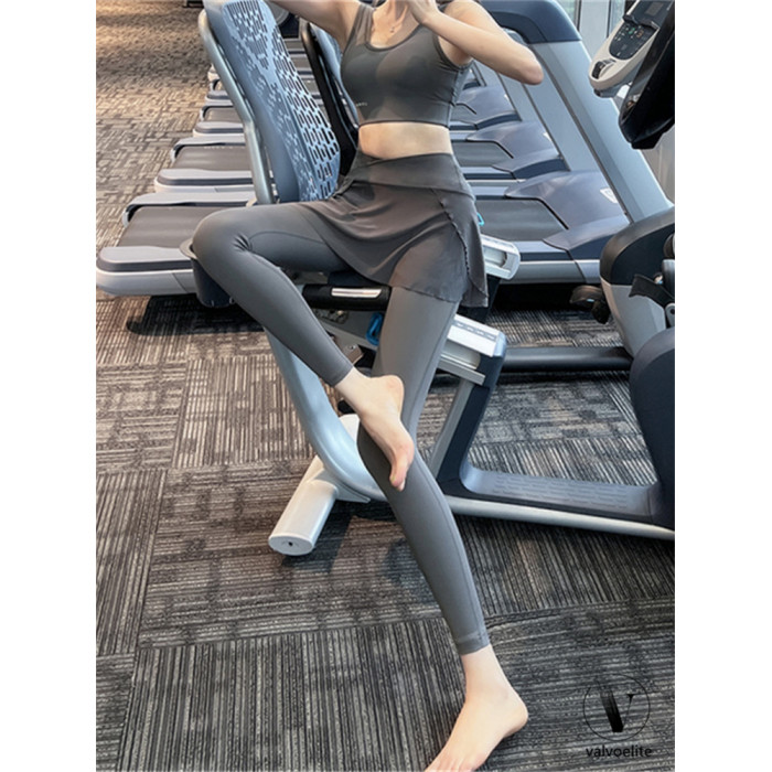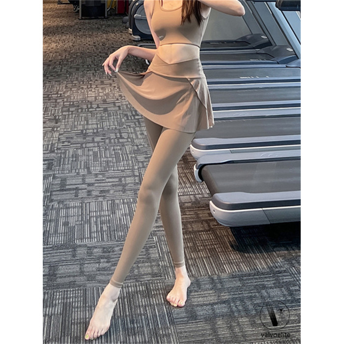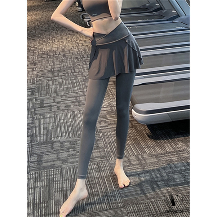 VALVOELITE假兩件健身褲女高腰彈力網紗速乾瑜伽褲收腹提臀運動褲