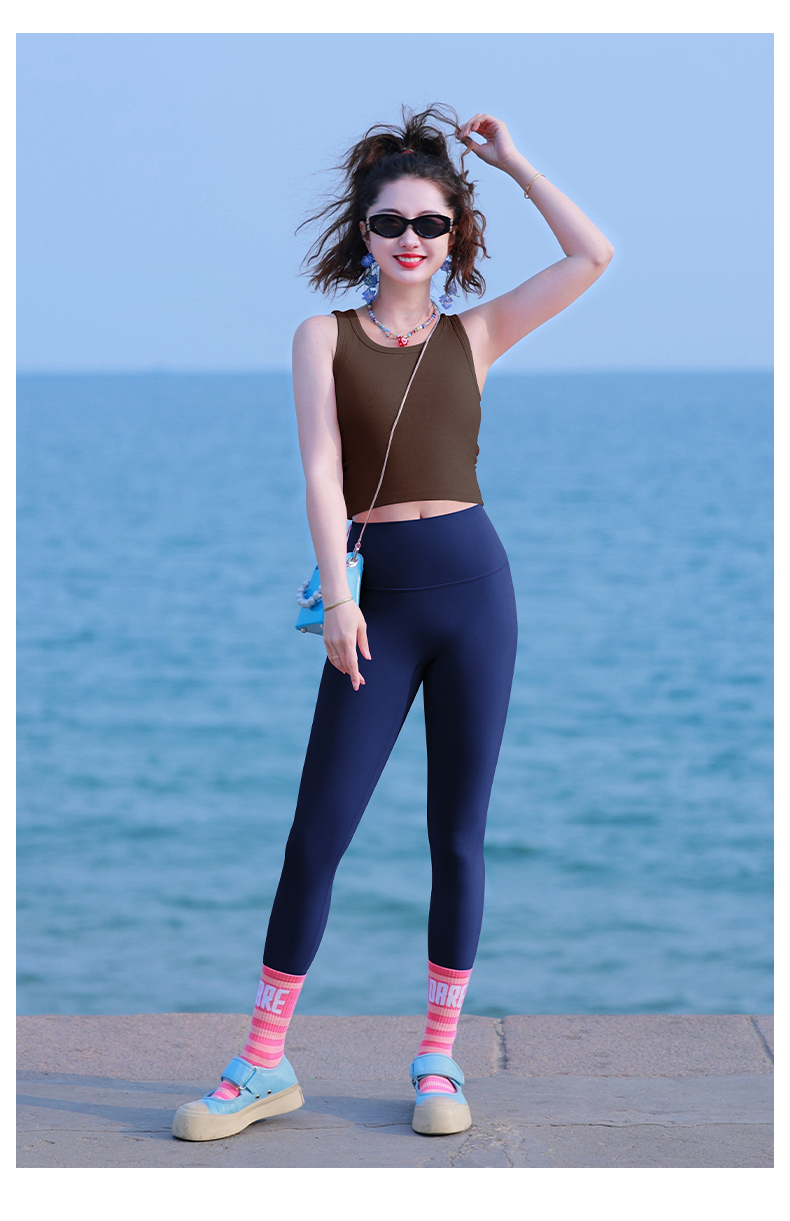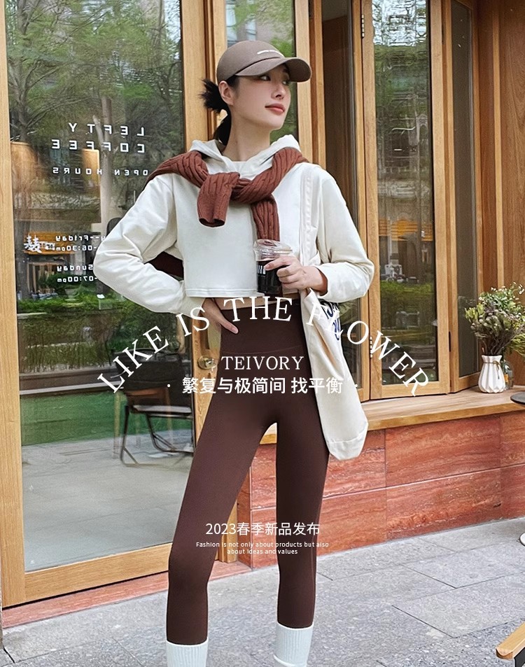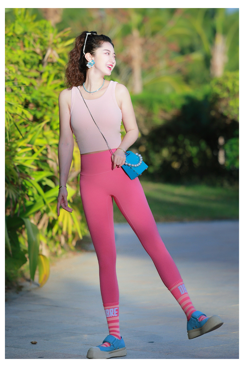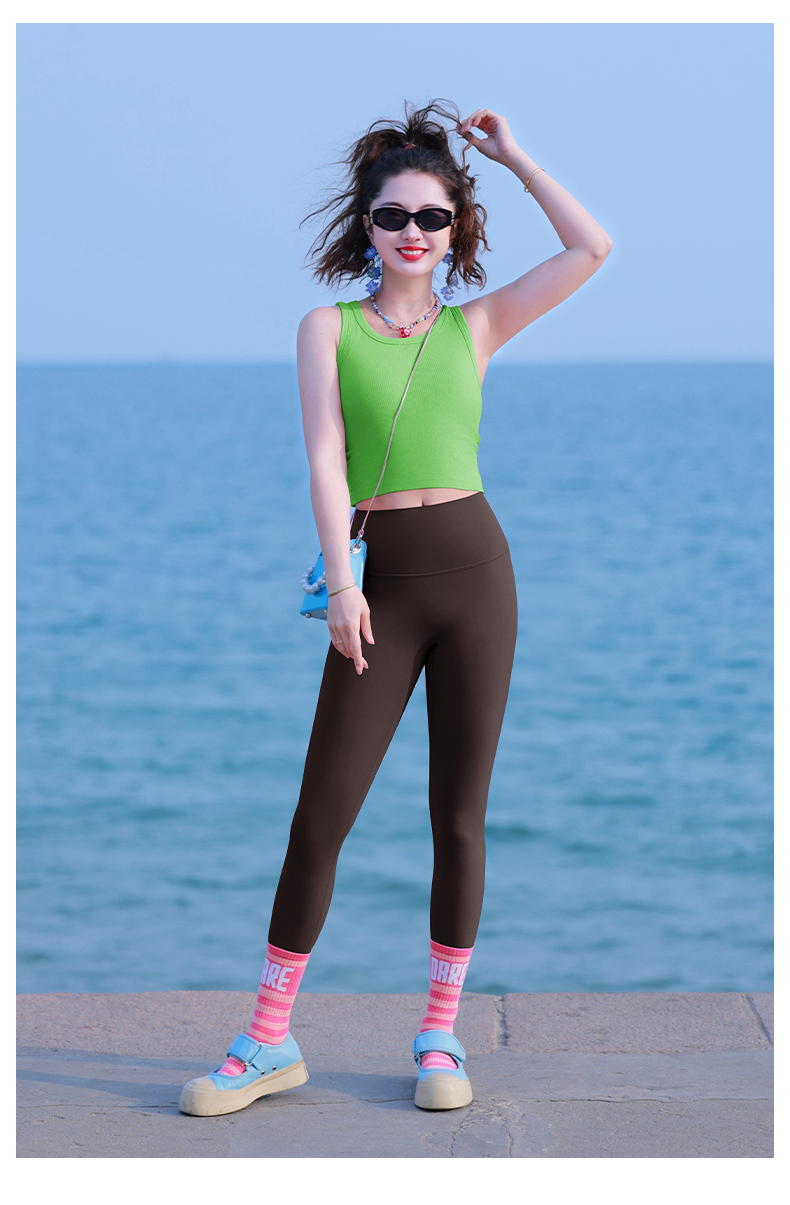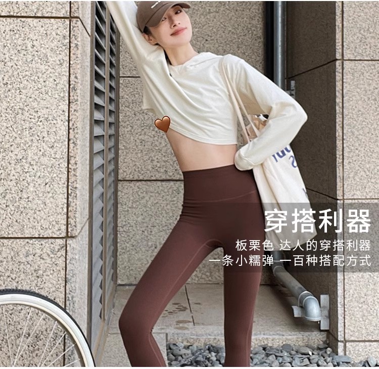 板慄色高腰彈力瑜伽褲軟糯無壓感緊身舒適包臀運動褲運動女健身褲