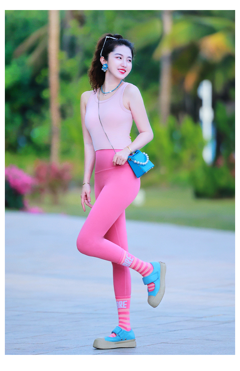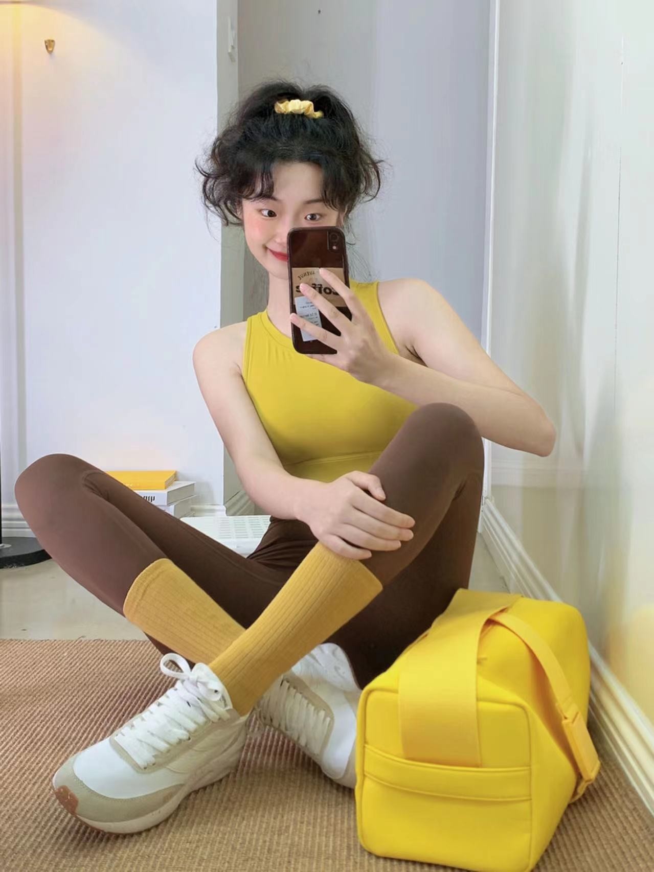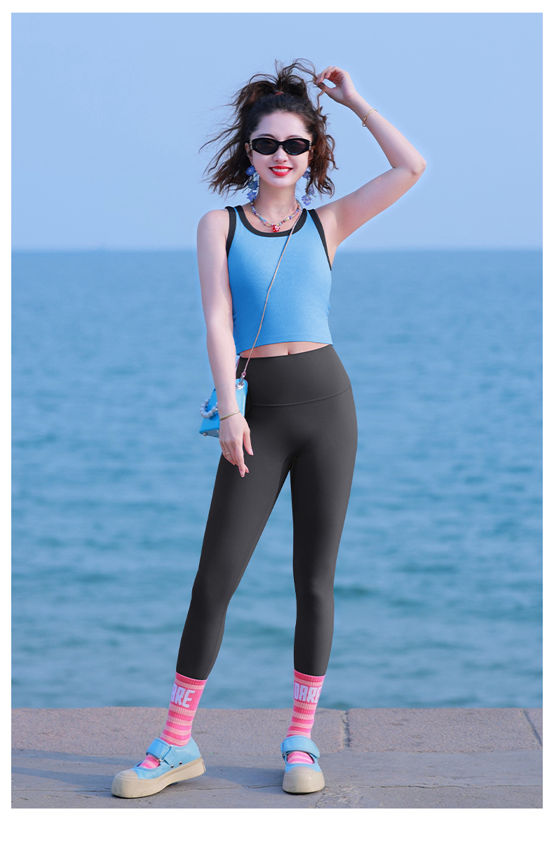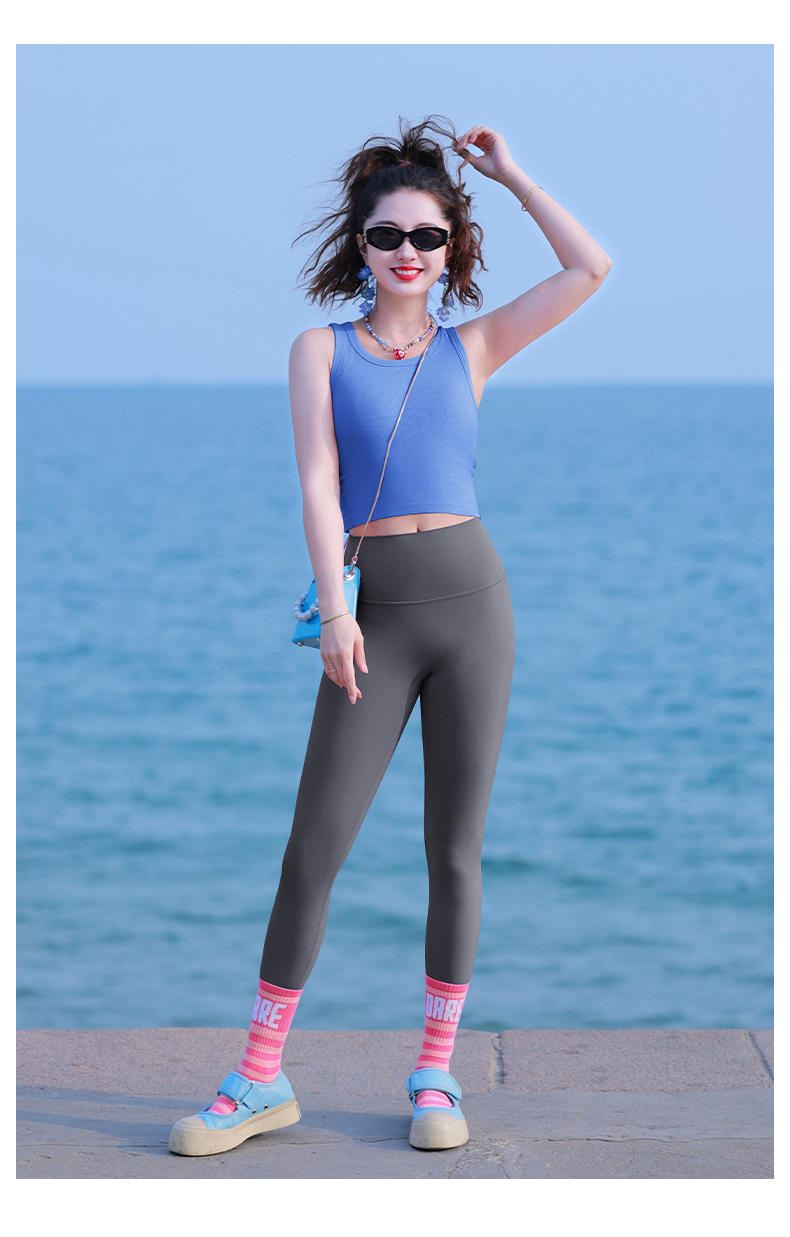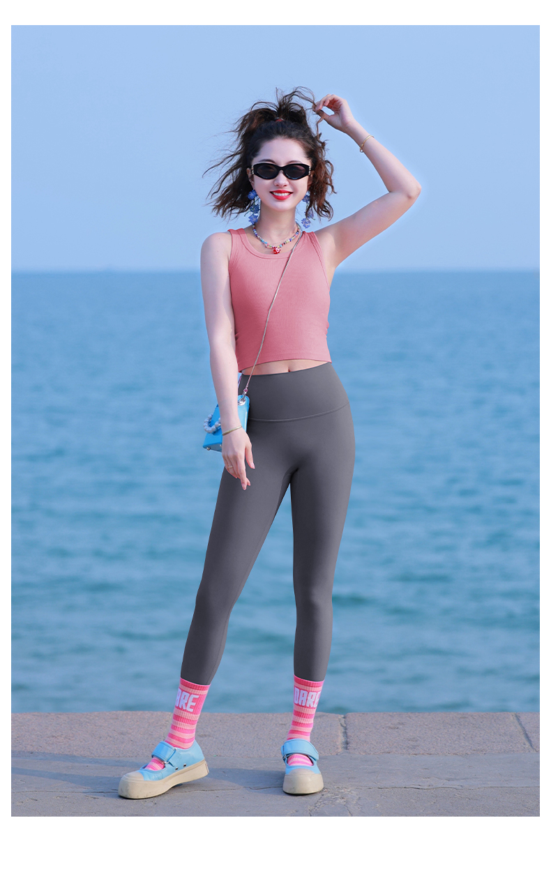 板慄色高腰彈力瑜伽褲軟糯無壓感緊身舒適包臀運動褲運動女健身褲