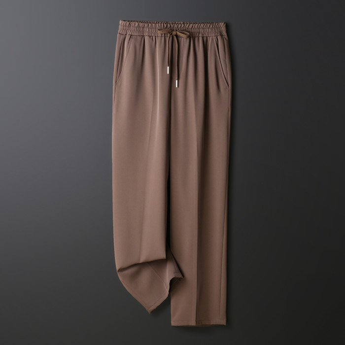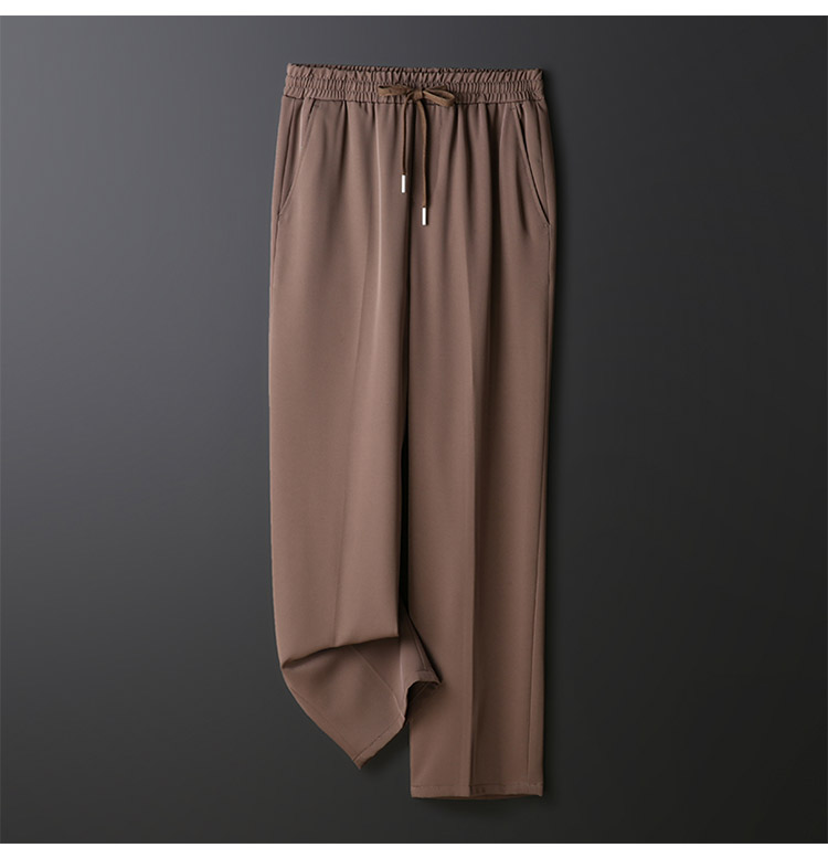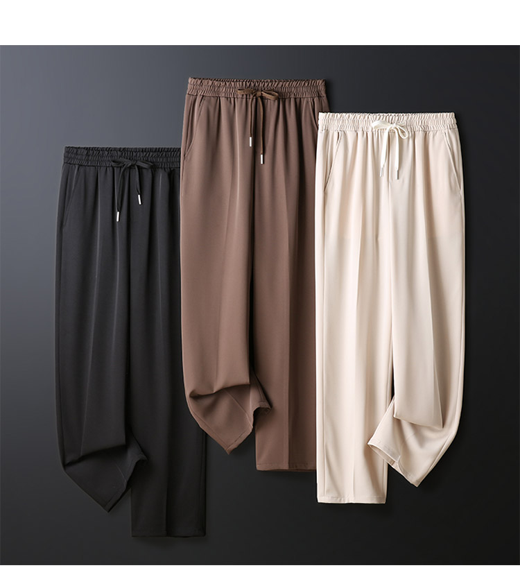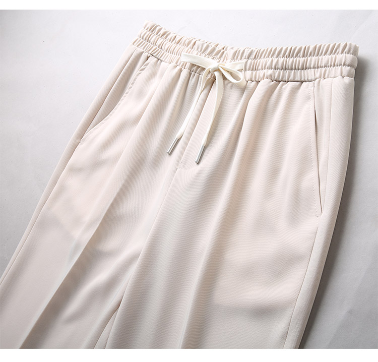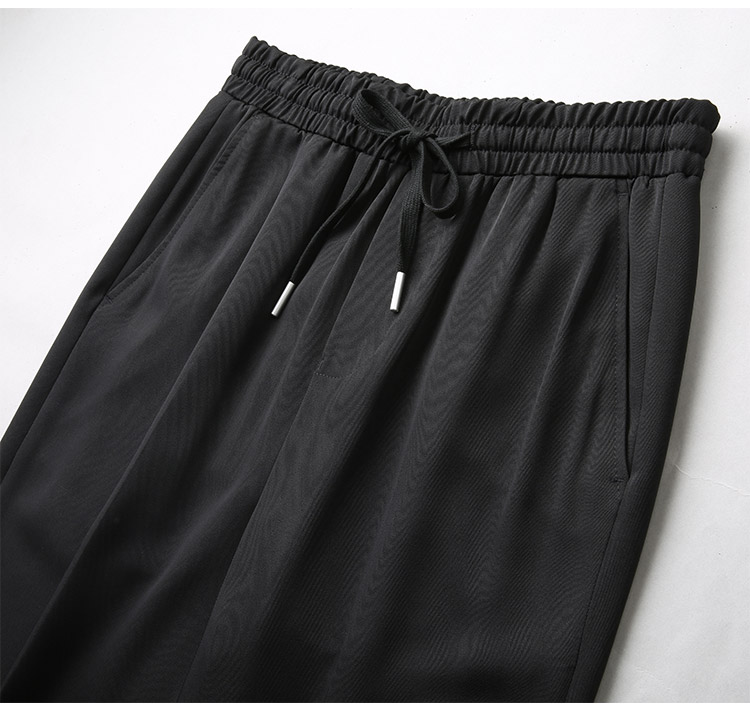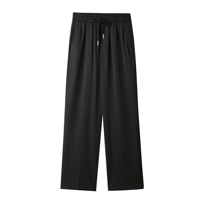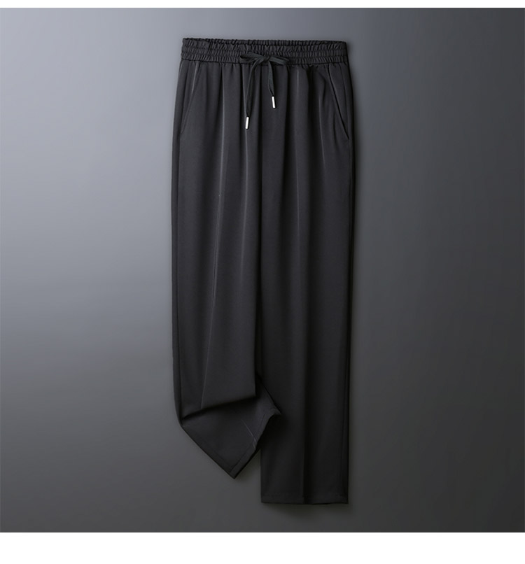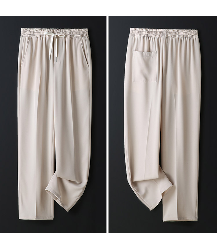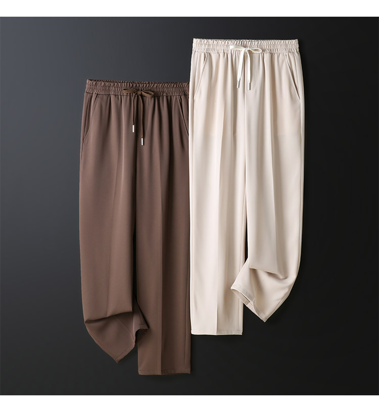慵懶風垂感濶腿褲男夏季薄款寬松直筒長褲冰絲涼爽衛褲抽繩休閒褲