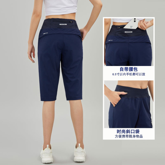 運動褲子女2025新款六分褲夏季薄款速乾跑步健身腰包6分休閒中褲