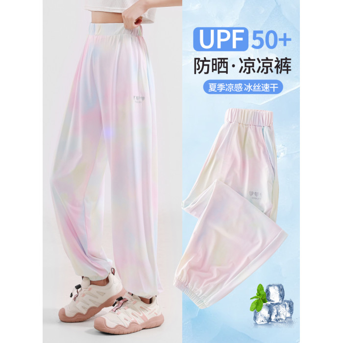 女童褲子夏季2025新款兒童冰絲速乾防蚊長褲夏薄款防曬大童運動褲