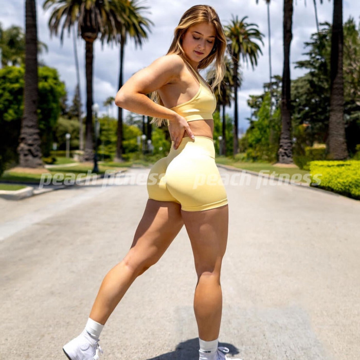 DFYNE健身短褲女夏季多巴胺蜜桃提臀高腰跑步瑜伽緊身三分運動褲