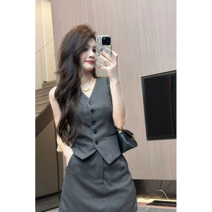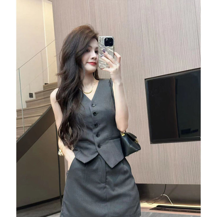 2025年夏季新款韓系設計感西裝馬甲套裝短裙短褲通勤正裝兩件套潮