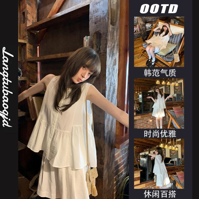 新款韓系甜美減齡娃娃衫裙褲時尚套裝女夏季高級感上衣褲子兩件套