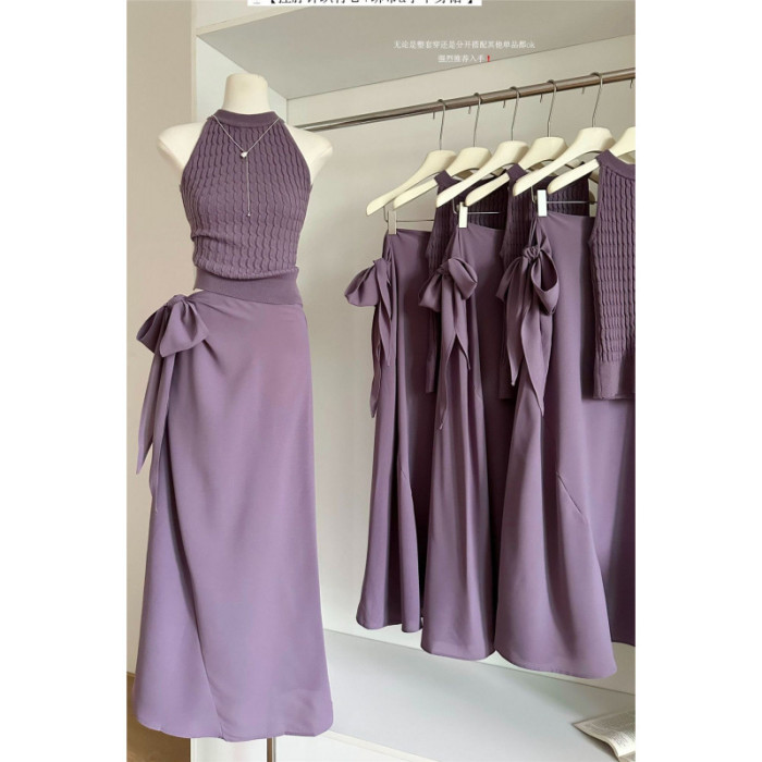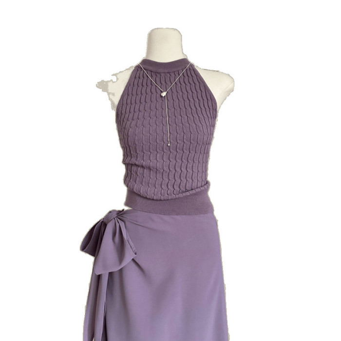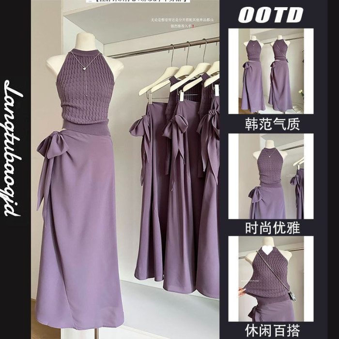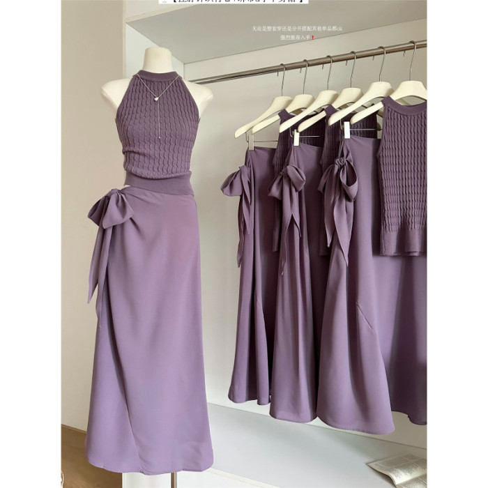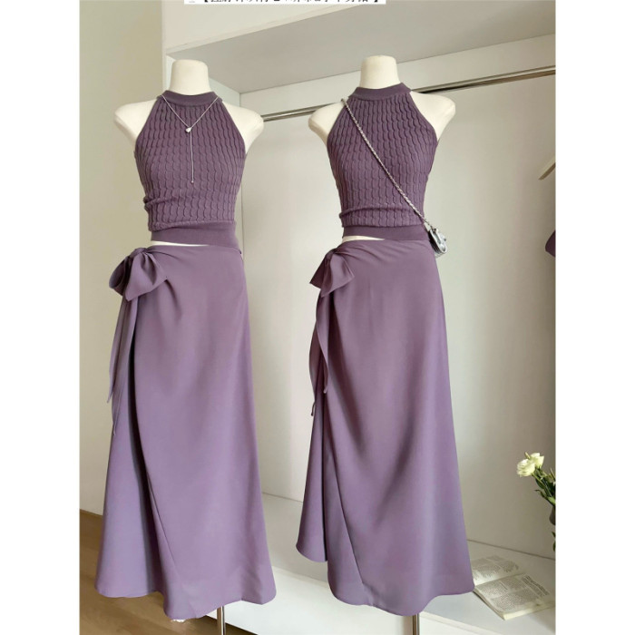 紫色無袖背心連衣裙子女裝夏季2025新款爆款夏日絕美穿搭套裝長裙