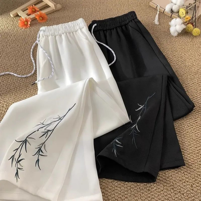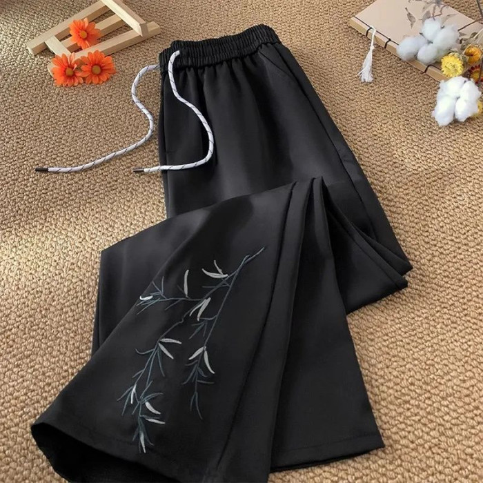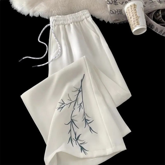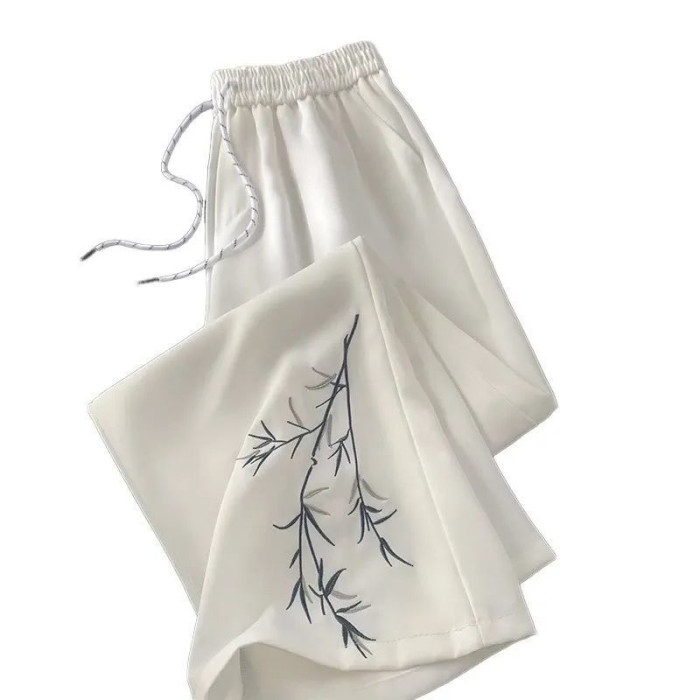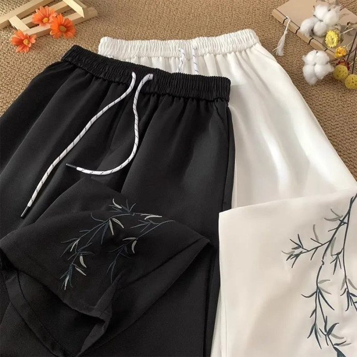 新中式國風竹子刺綉西褲寬松男女潮牌春夏薄款直筒濶腿休閒長褲潮