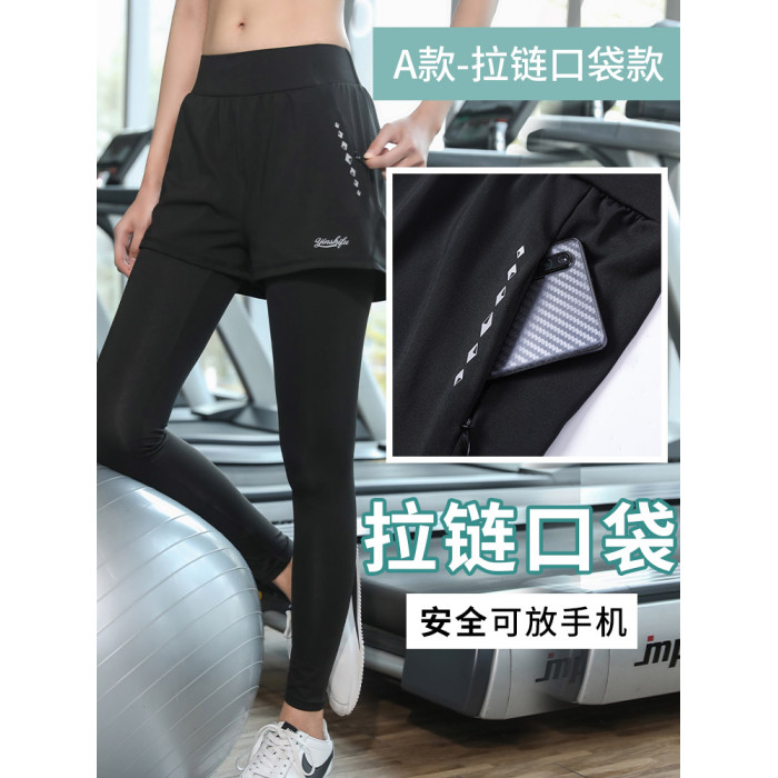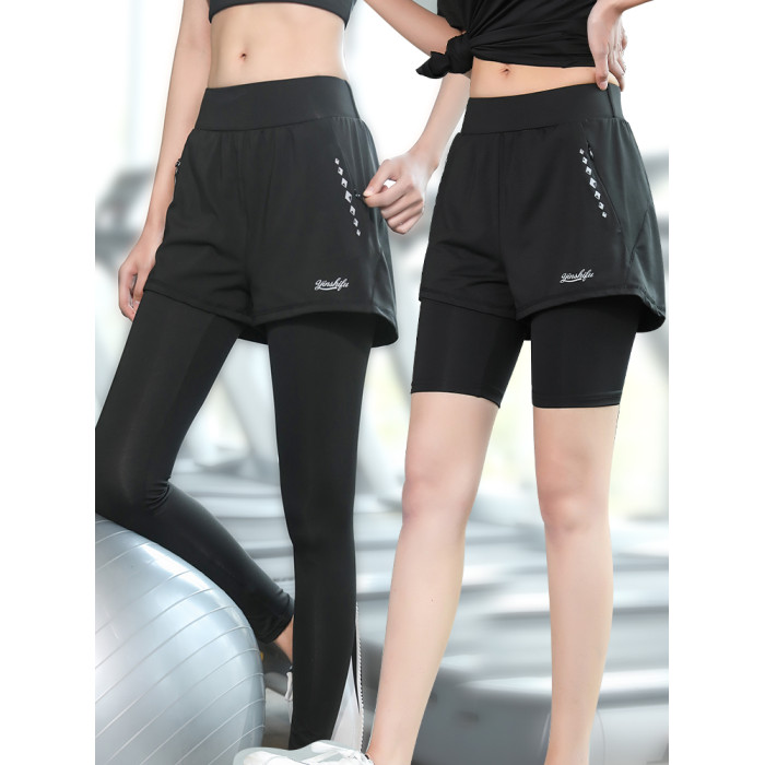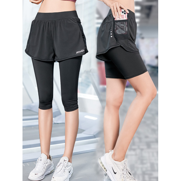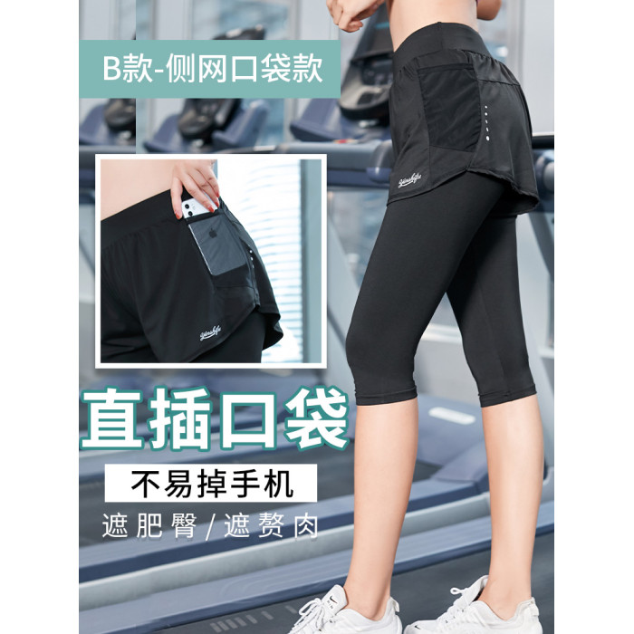 顯瘦大碼運動褲健身服女200斤胖MM跑步緊身訓練假兩件瑜伽短褲子