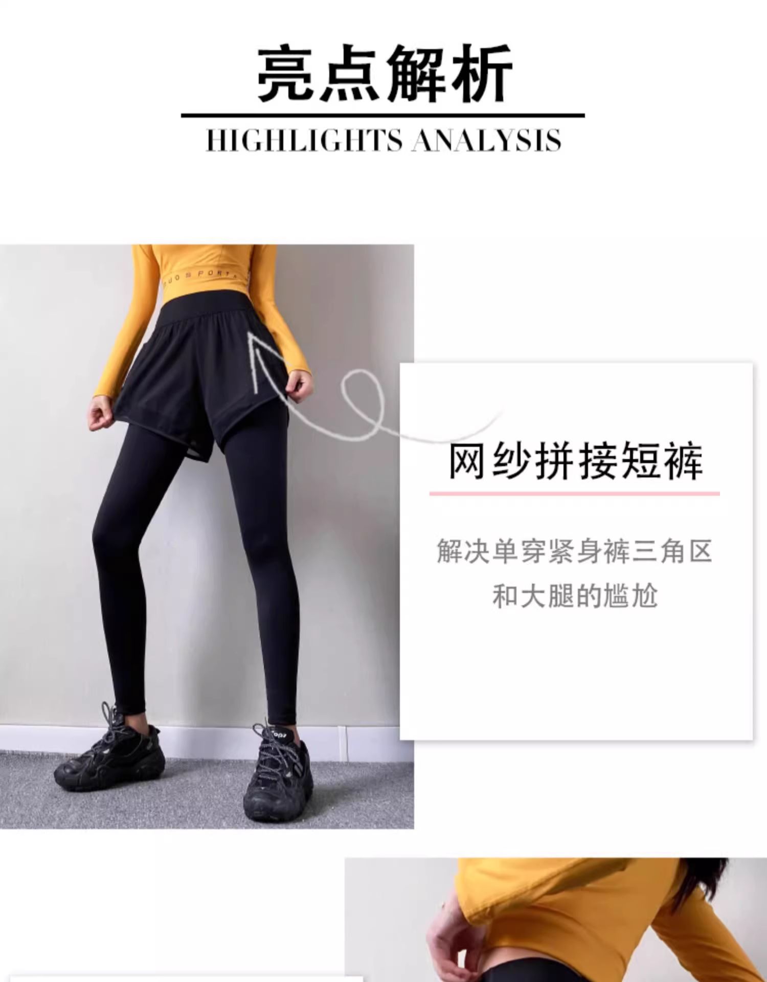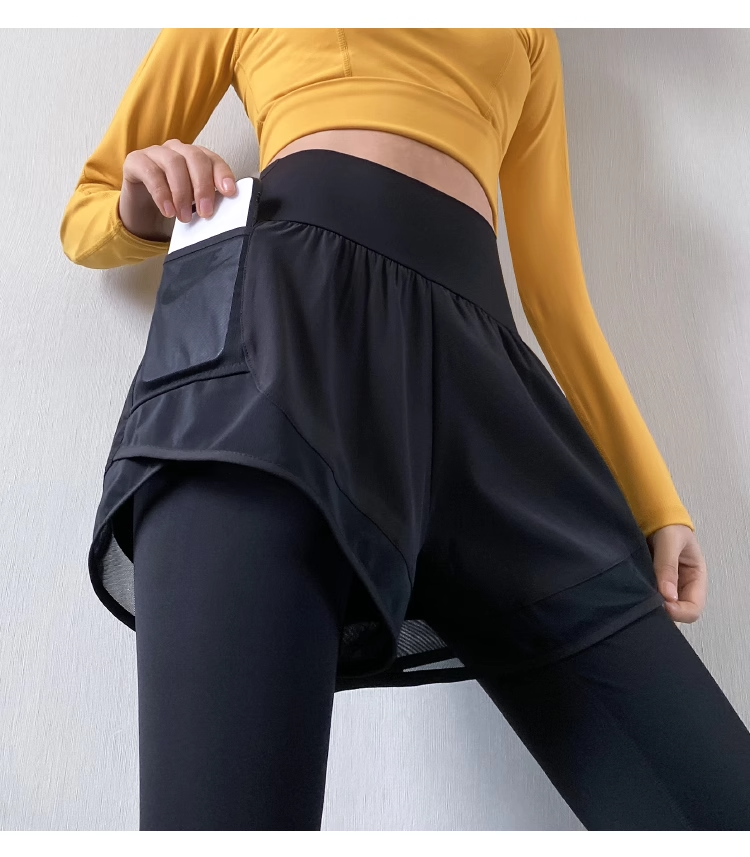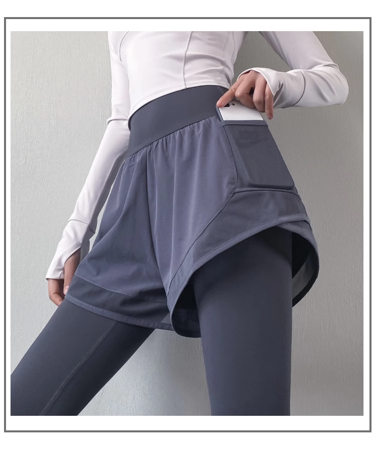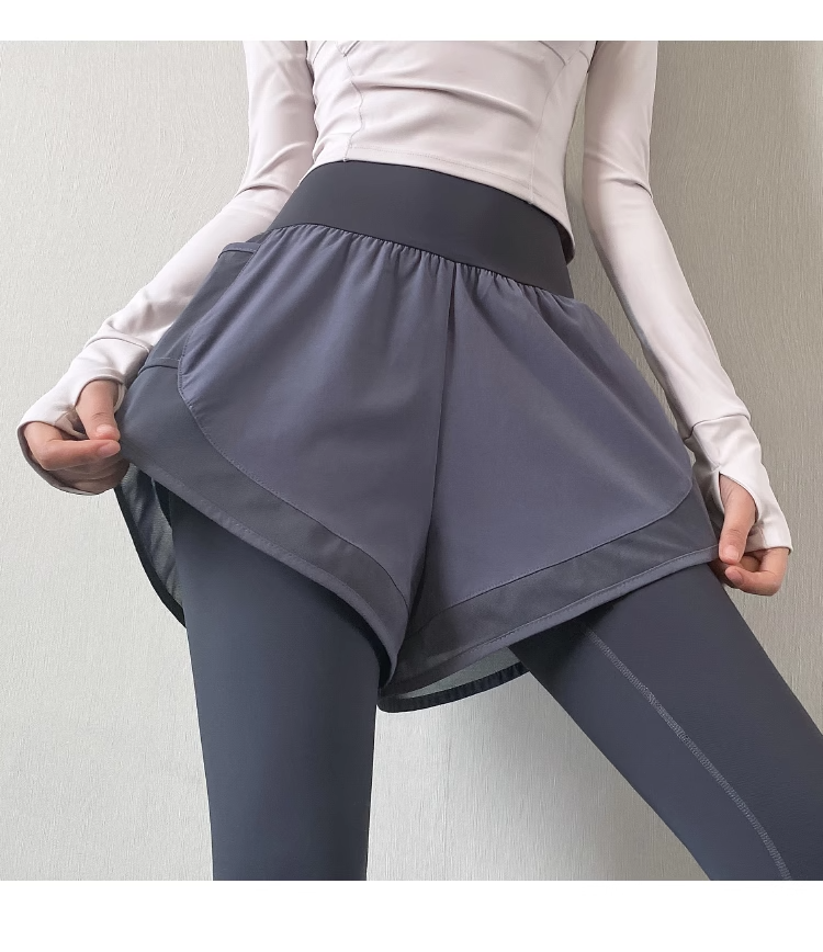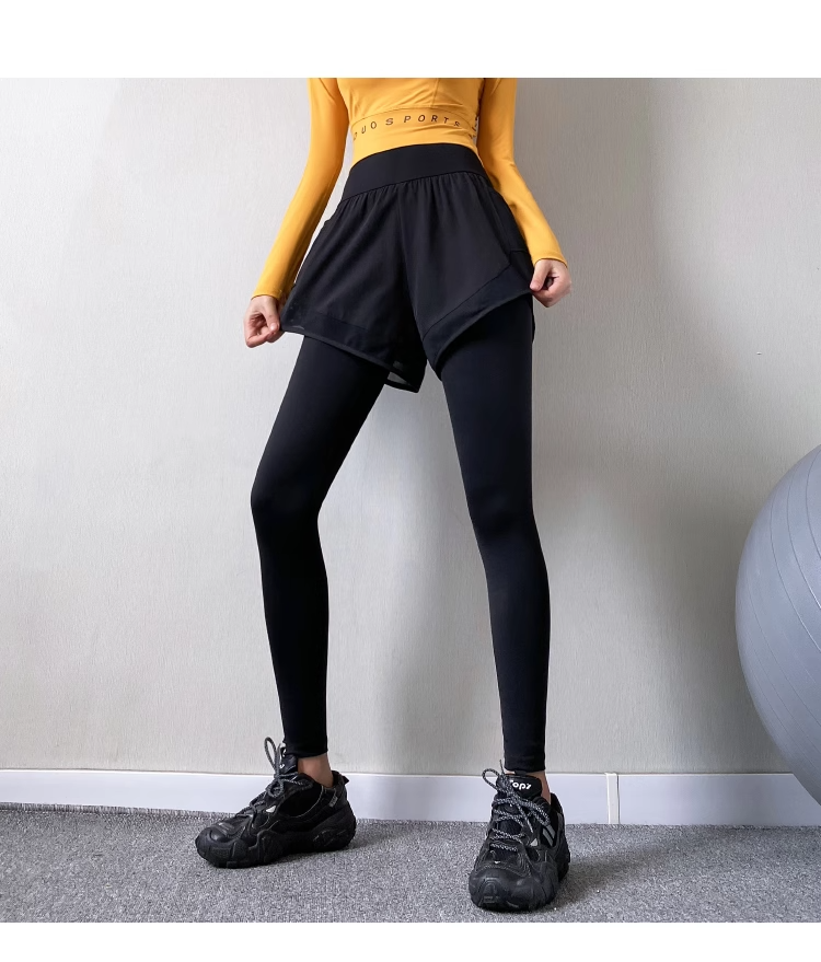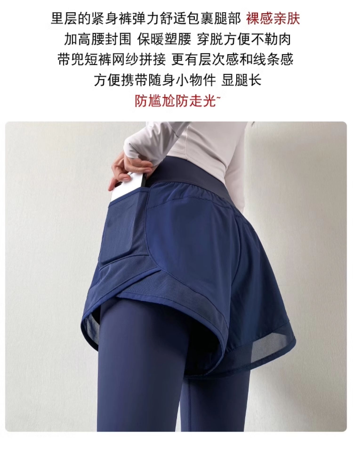 IuIu yogo高腰提臀瑜伽褲女假兩件透氣速乾健身褲夏季運動褲