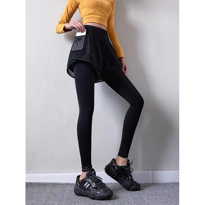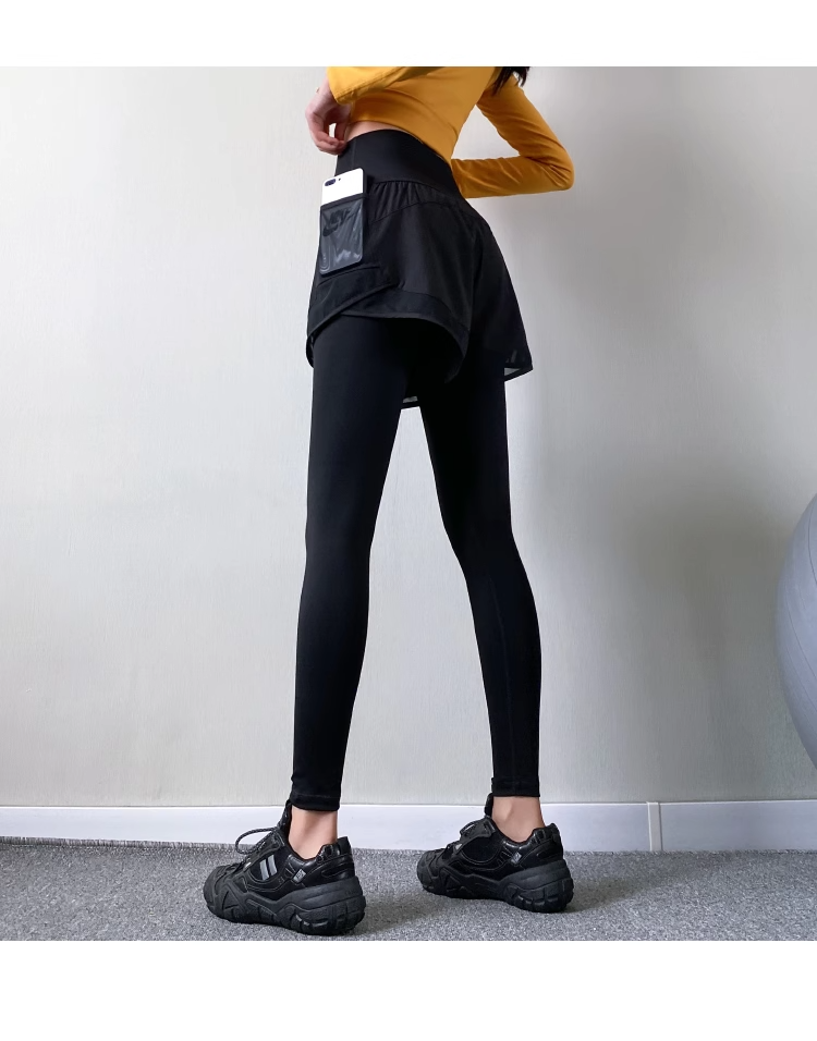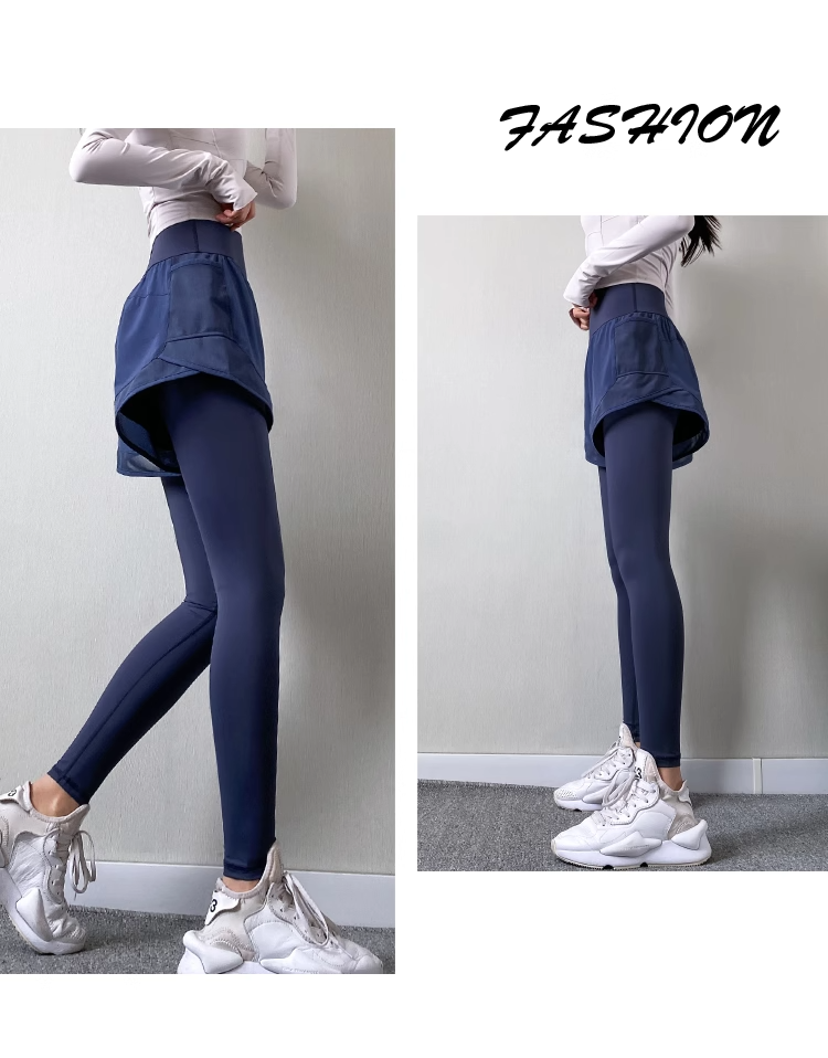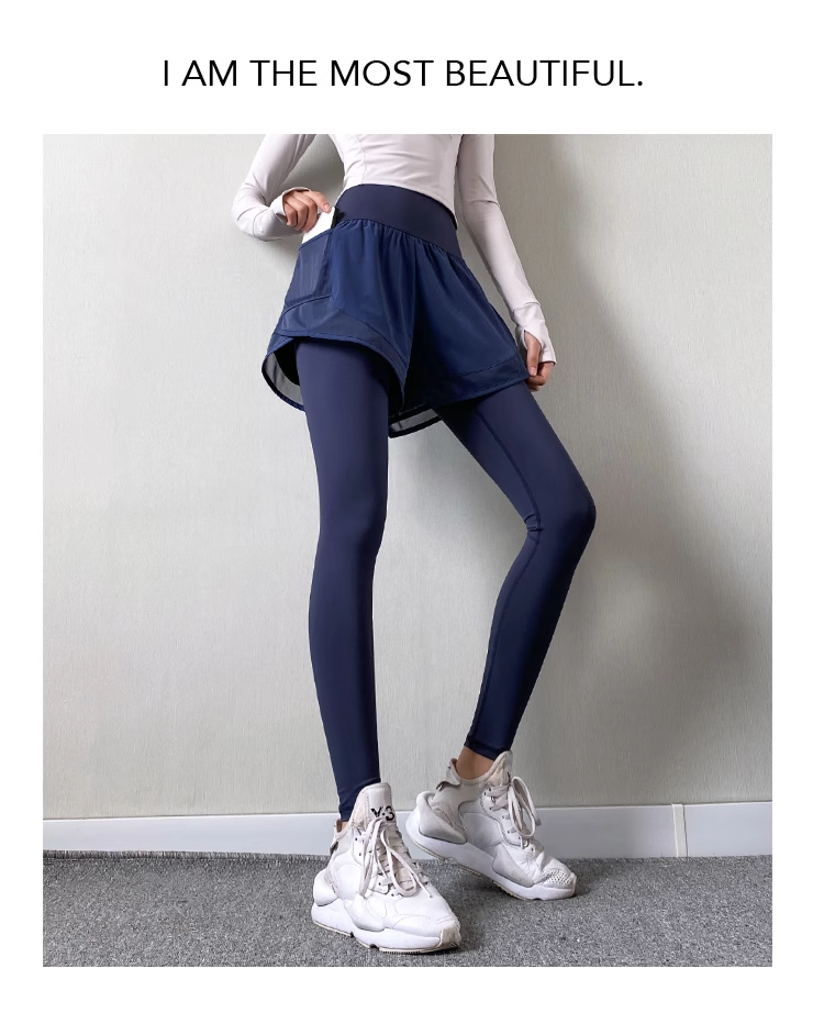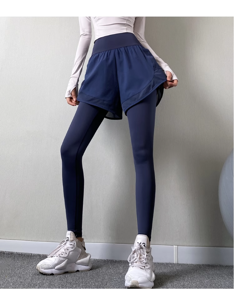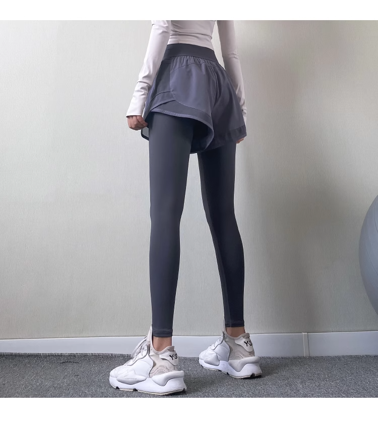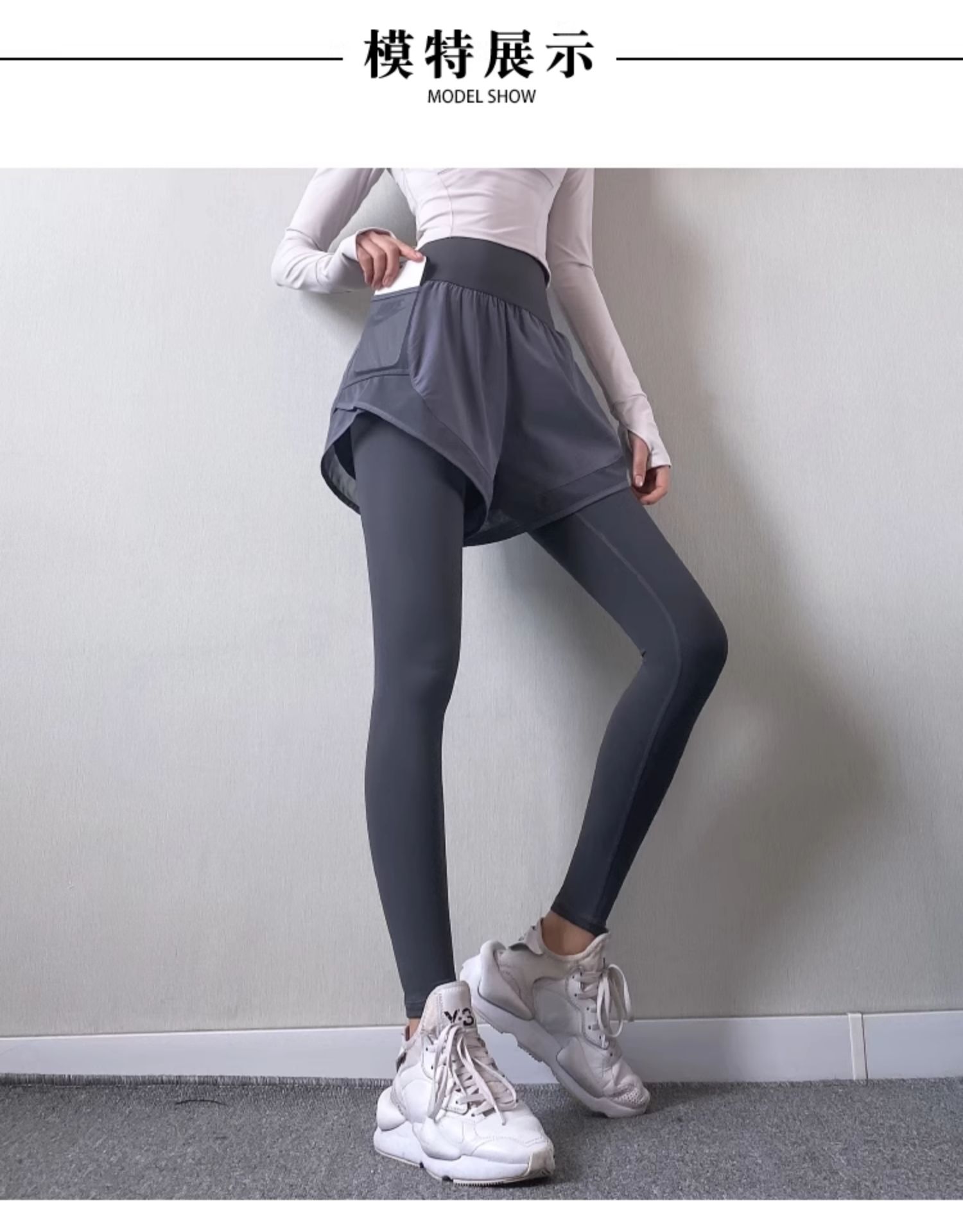 IuIu yogo高腰提臀瑜伽褲女假兩件透氣速乾健身褲夏季運動褲