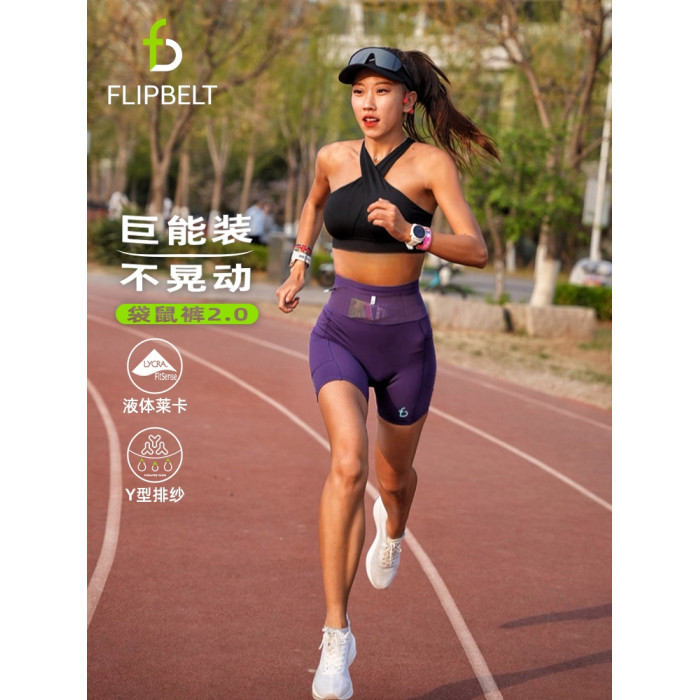 飛比特「競賽腰包褲」袋鼠褲2.0緊身健身女運動短褲騎行速乾跑步