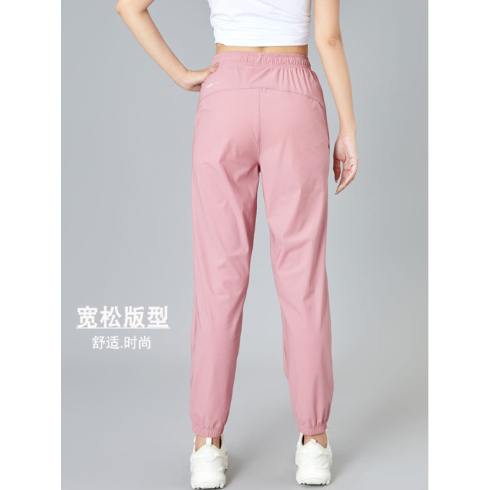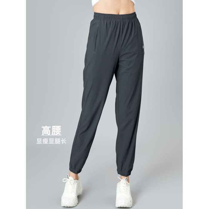 冰絲速乾跑步健身女褲薄款彈力運動褲拉鍊口袋2024新款休閒束腳褲