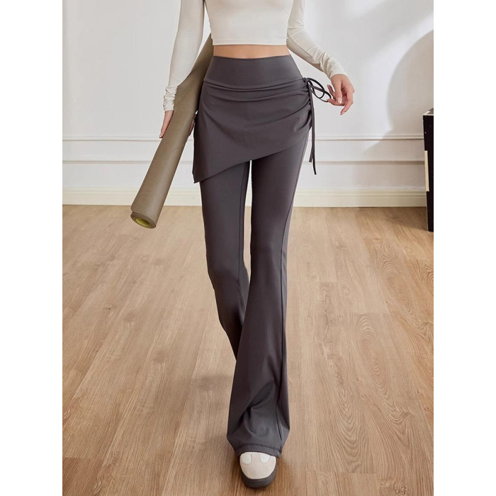 假兩件健身褲女高腰顯瘦微喇瑜伽褲新款緊身遮臀訓練普拉提運動褲