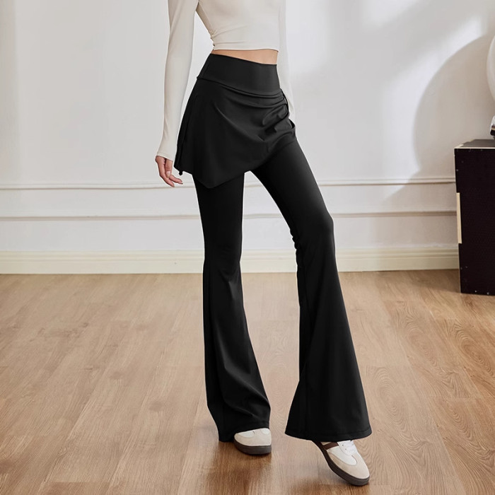 假兩件瑜伽褲防走光外穿運動褲防尲尬器械健身女褲微喇叭秋冬室內