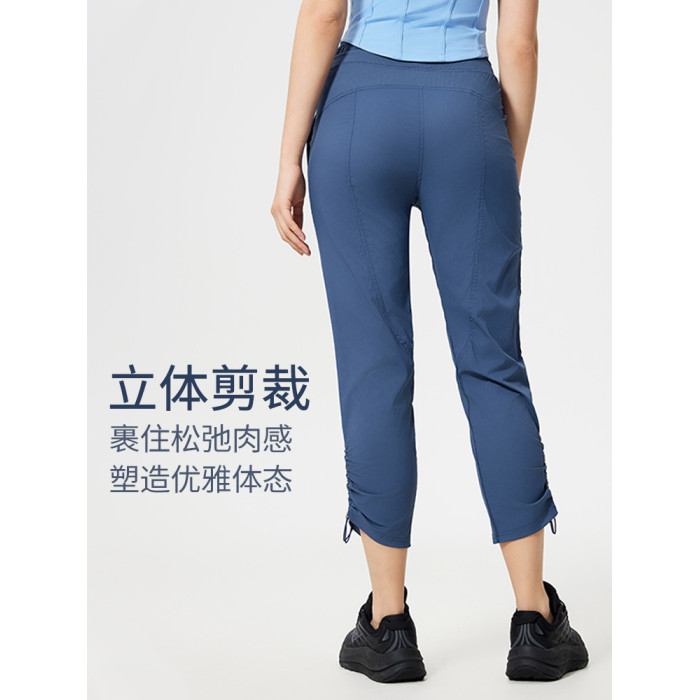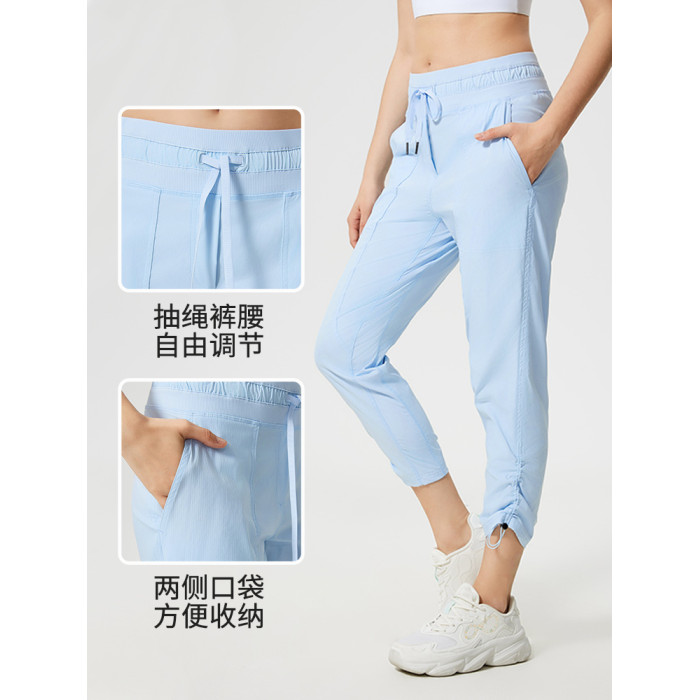 【夏季涼感】速乾休閒運動褲女寬松透氣顯瘦健身束腳中長褲