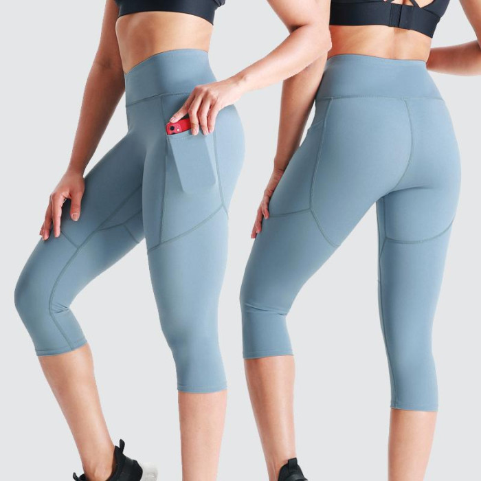 跑步速乾七分褲女高腰翹臀緊身褲瑜伽褲帶手機口袋高彈顯瘦運動褲