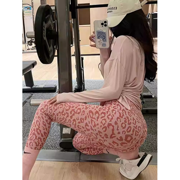 粉色漸變豹紋褲 平滑臀部針織一體