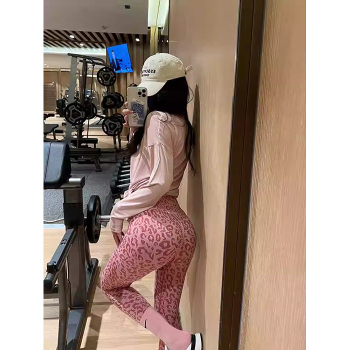 KAYANTY性感健身褲女蜜桃歐美粉色豹紋瑜伽褲歐美提臀運動褲春秋