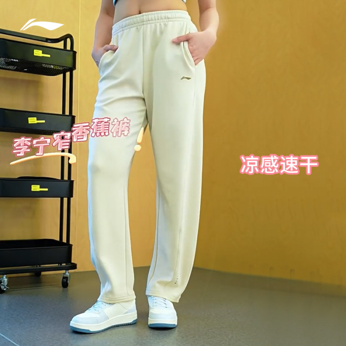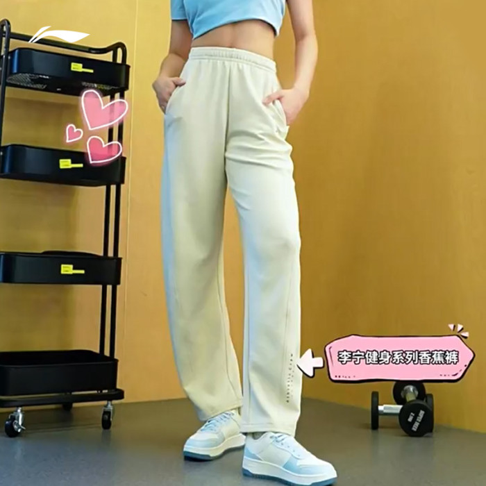 李甯小個子香蕉褲女裝2025新款白色窄版休閒衛褲直筒濶腿褲運動褲