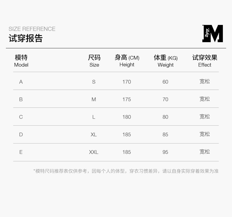 款式及尺寸: