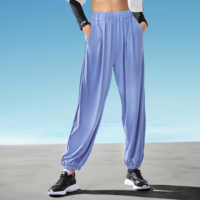 李甯春季健身系列衛褲涼感反光防曬休閒束腳透氣運動褲女AKLT544