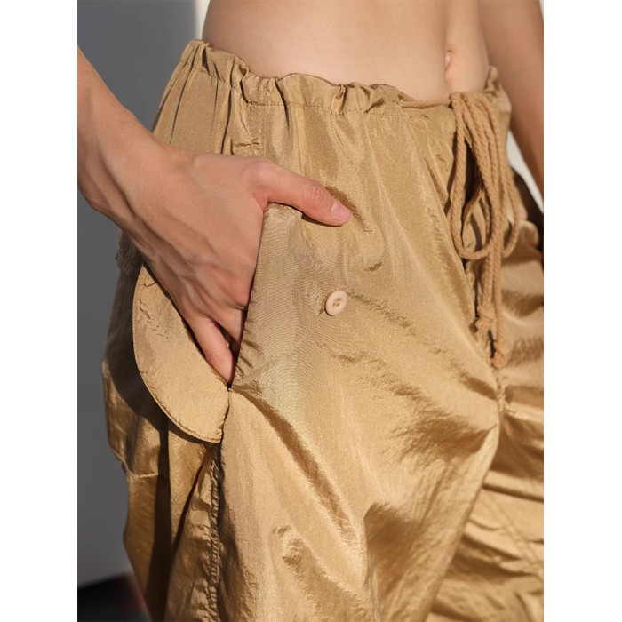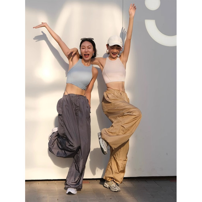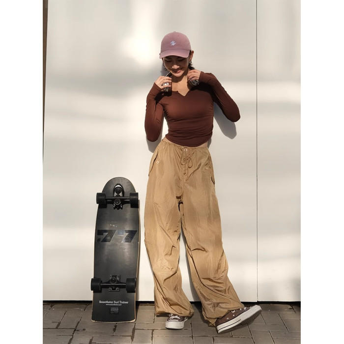 美式工裝褲女抽繩設計感寬松休閒運動褲濶腿顯瘦美拉德降落繖褲女